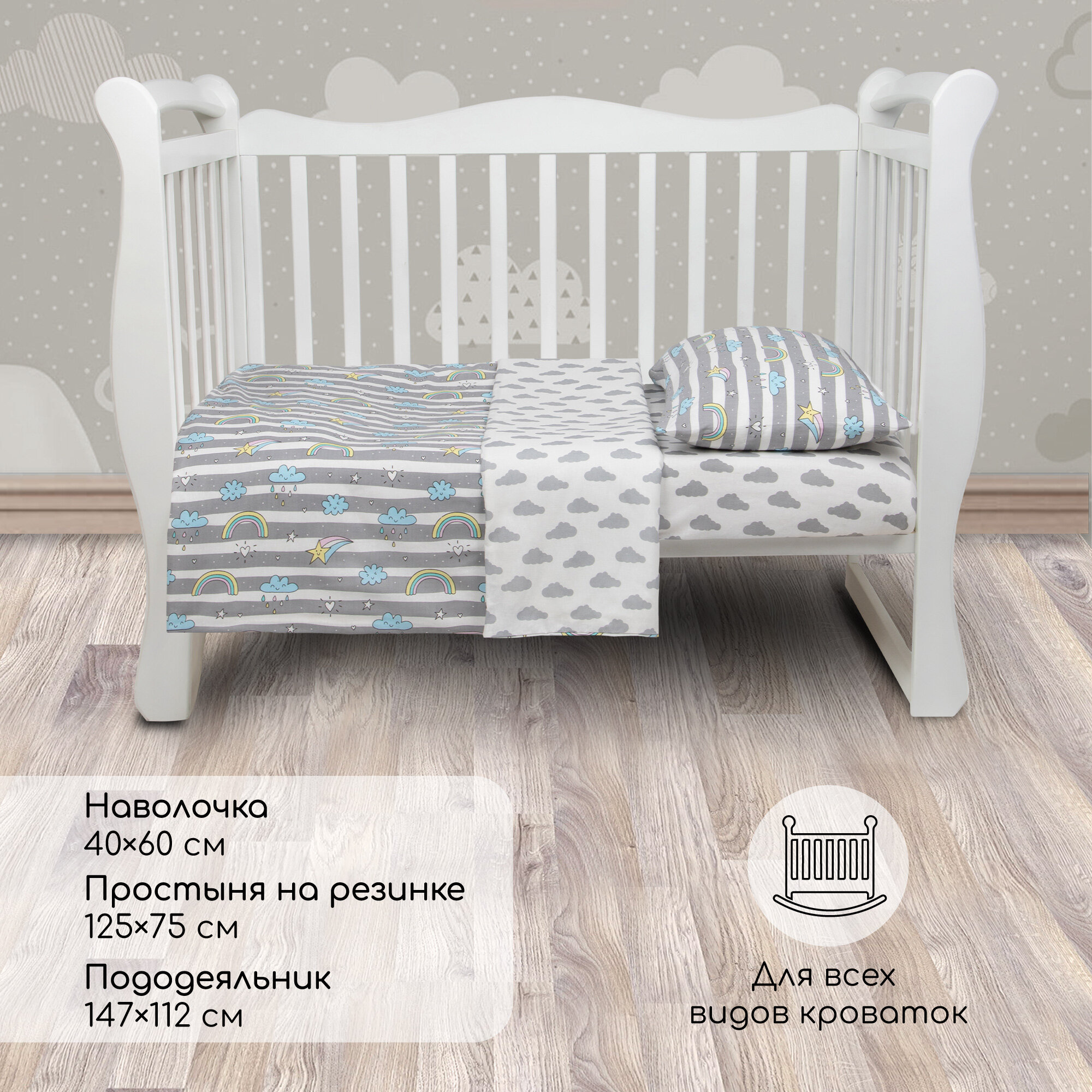 Комплект в кроватку 3 предмета AmaroBaby BABY BOOM (Радуга, серый) информация: