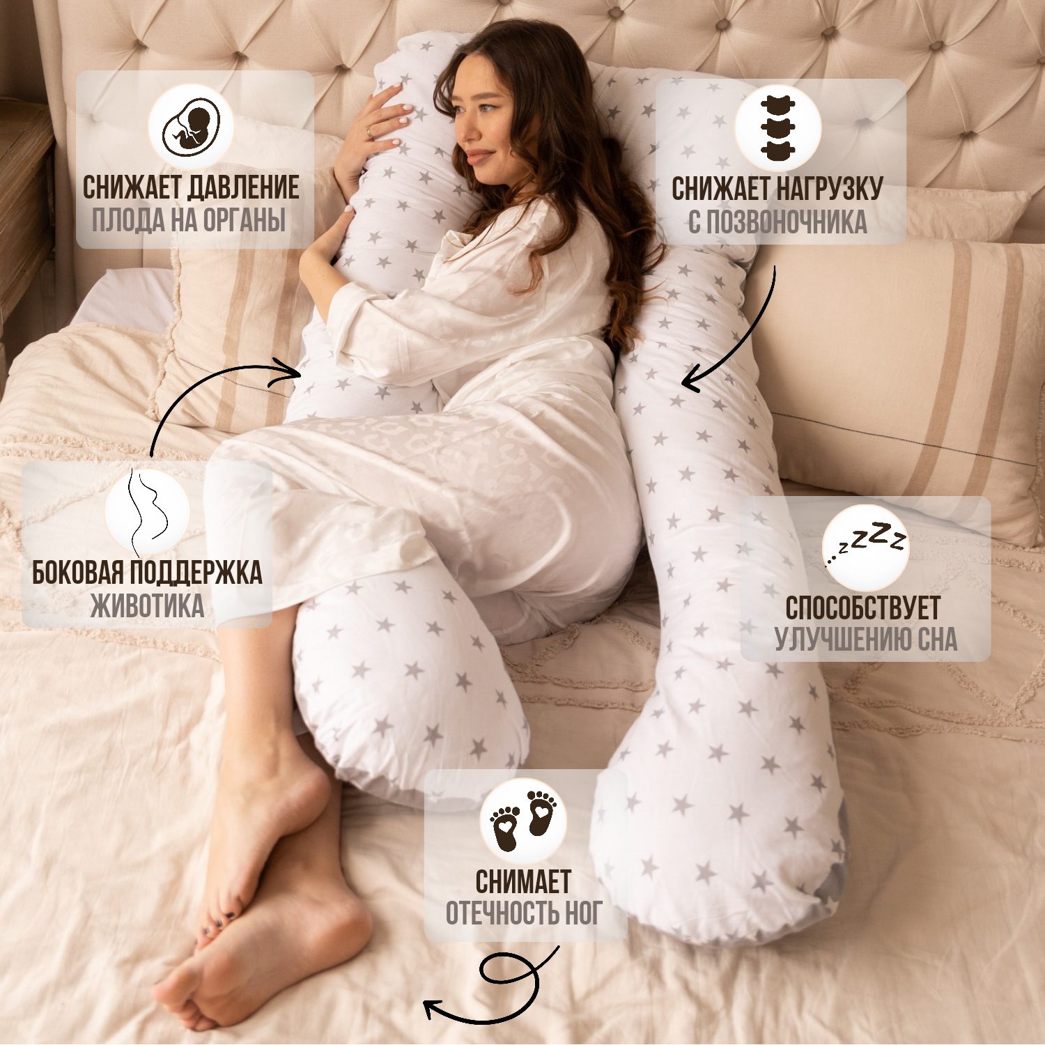 10 цен на Подушка для беременных анатомическая Белая/Серая