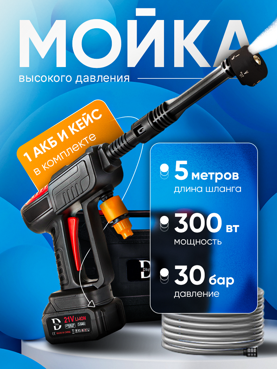 10 цен на Мойка высокого давления DHY с 1 аккумулятором и кейсом