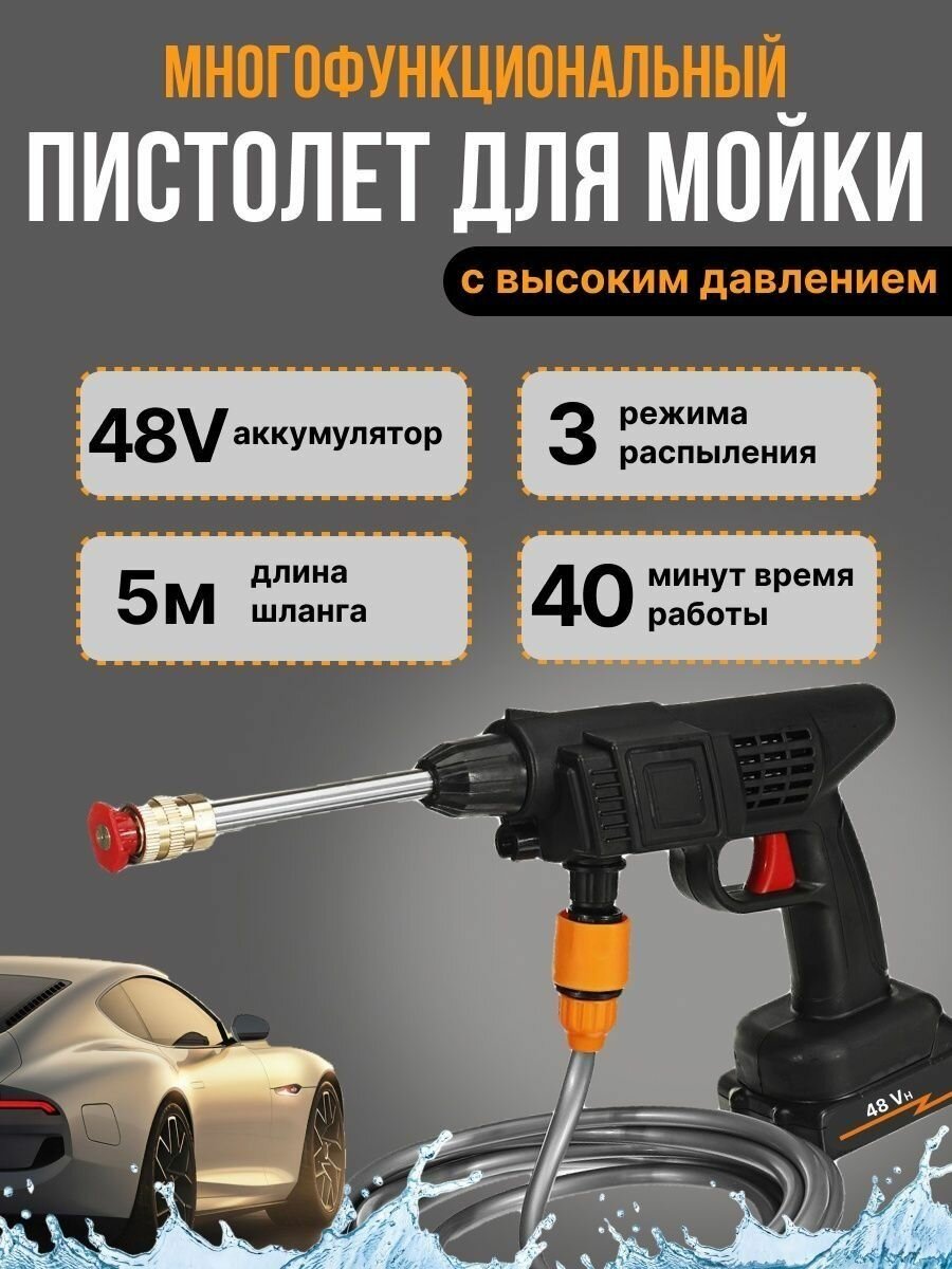 Аккумуляторная ручная мойка высокого давления с пеногенератором и фильтром для воды Cleaning Gun