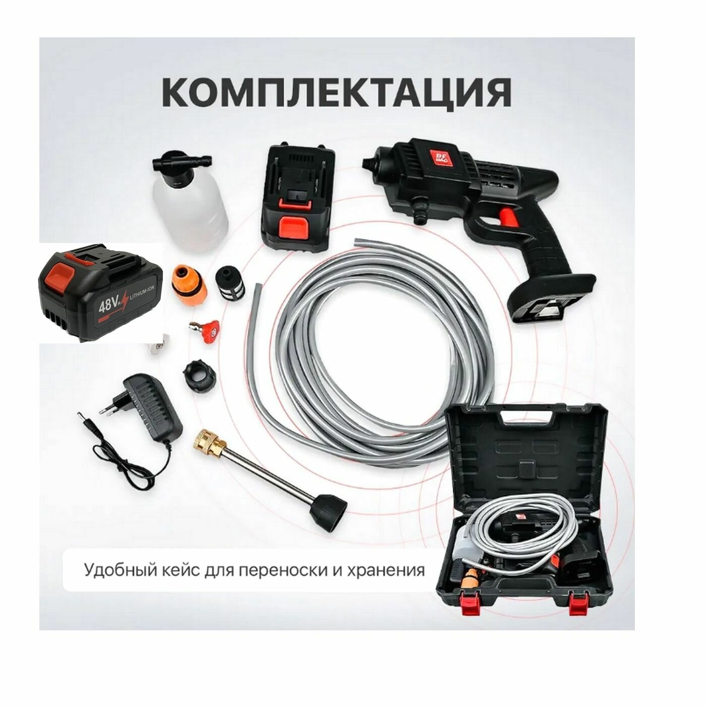 Беспроводная автомойка высокого давления с двумя аккумуляторами в кейсе информация: