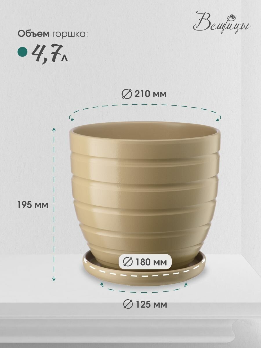 Керамический горшок цветочный ВеЩицы с подставкой блюдцем / объем 4,7 л, цвет капучино 1 480 ₽