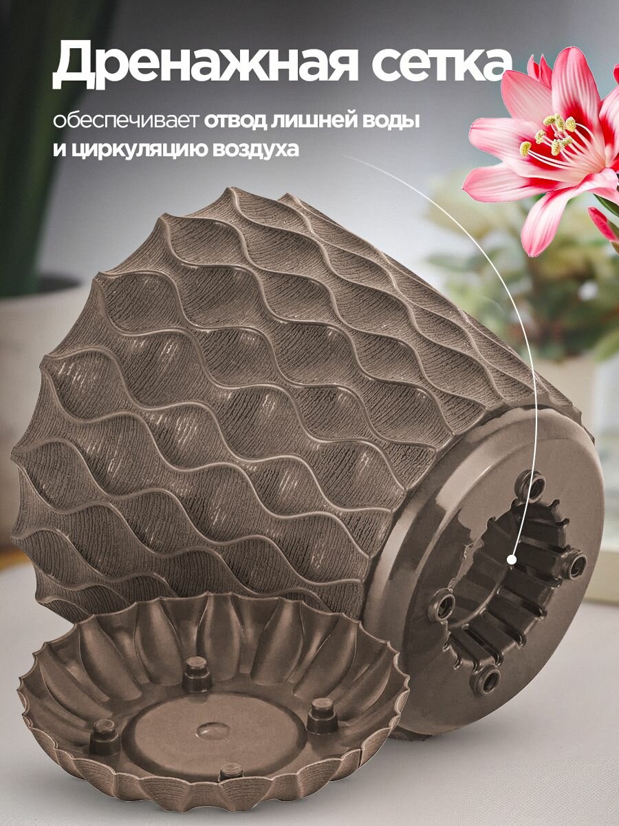 Горшок Ingreen Wave для цветов D205мм 4,7л с дренажной сетк./съемн. поддон горький шоколад (ig650310 1 285 ₽