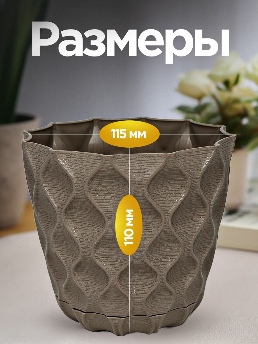 Горшок для цветов пластиковый 2,5л d-17,5см «Wave» с дренажной сеткой и съемным поддоном, французский платан 579 ₽