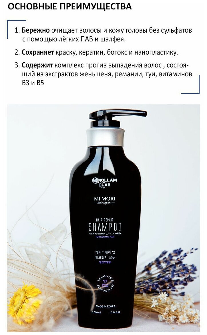 Nollam Lab Восстанавливающий бессульфатный шампунь для нормальных волос, 300 мл 765 ₽