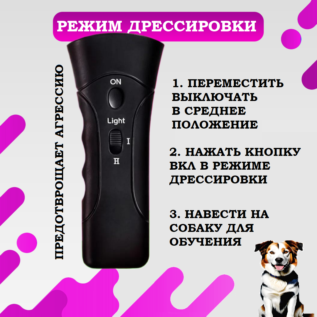 Отпугиватель собак ультразвуковой с фонариком, c функцией дрессировки, для защиты от животных, антилай информация: