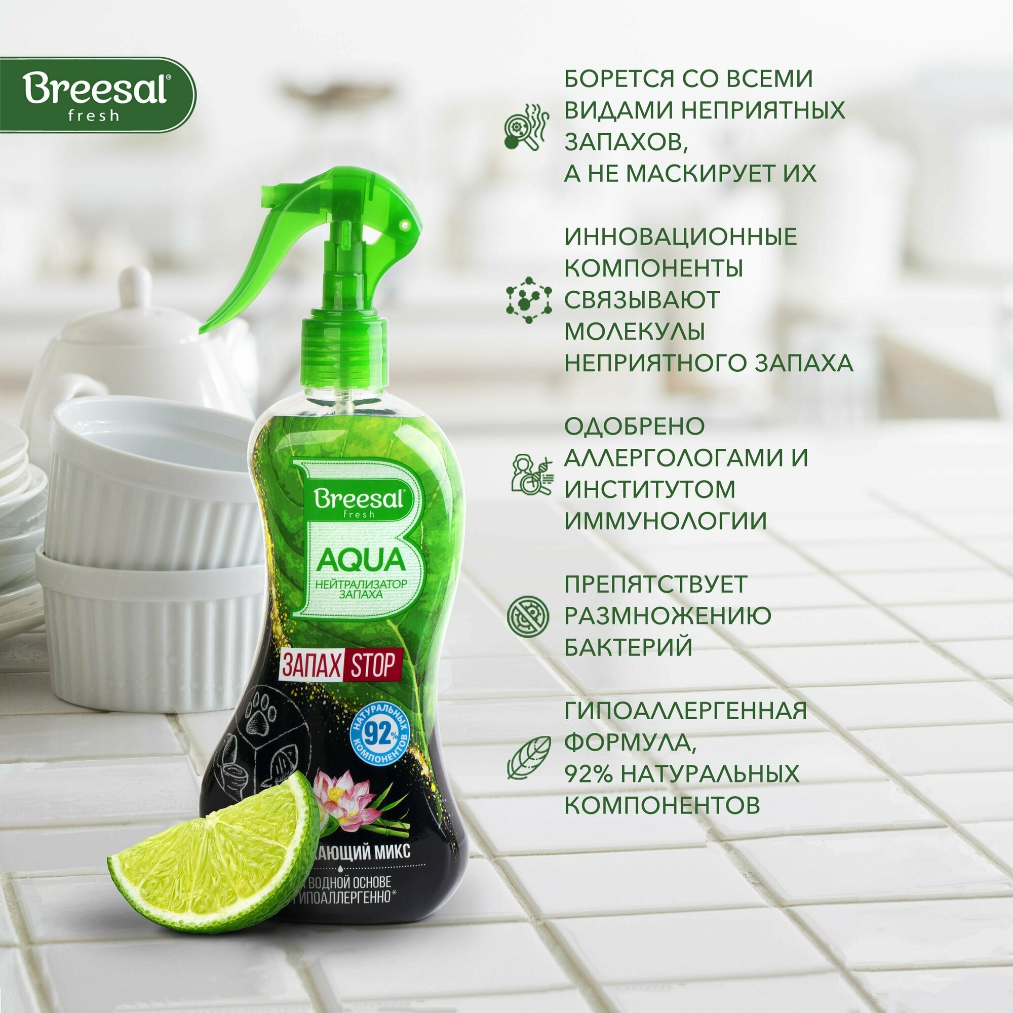 10 цен на Нейтрализатор запаха Освежитель воздуха Breesal AQUA Освежающий микс, 375 мл 1 шт