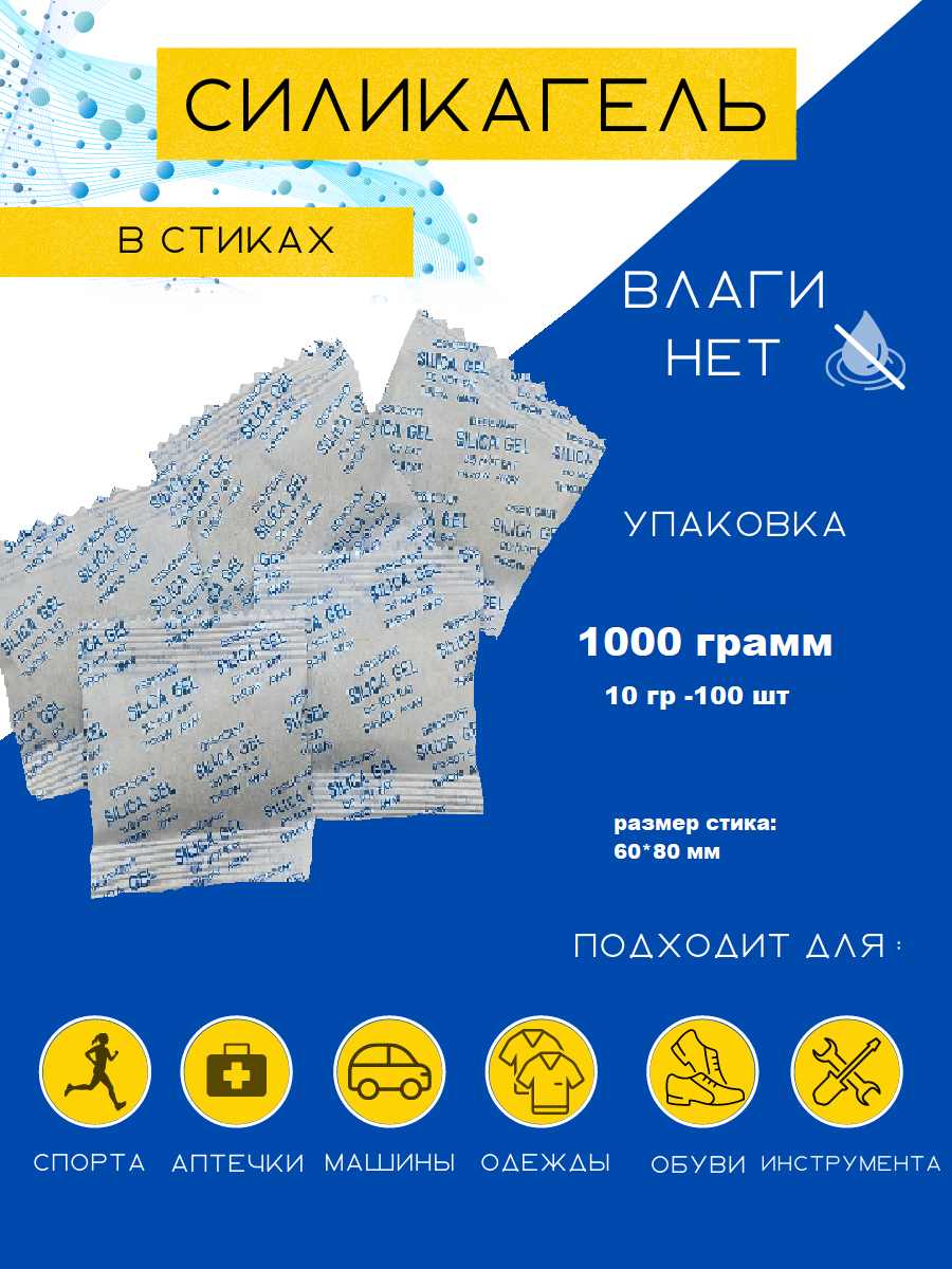 10 цен на Силикагель в пакетиках поглотитель влаги, стики 100 шт. по 10 гр, влагопоглотитель/сорбент/нейтрализатор запаха/сорбент/осушитель