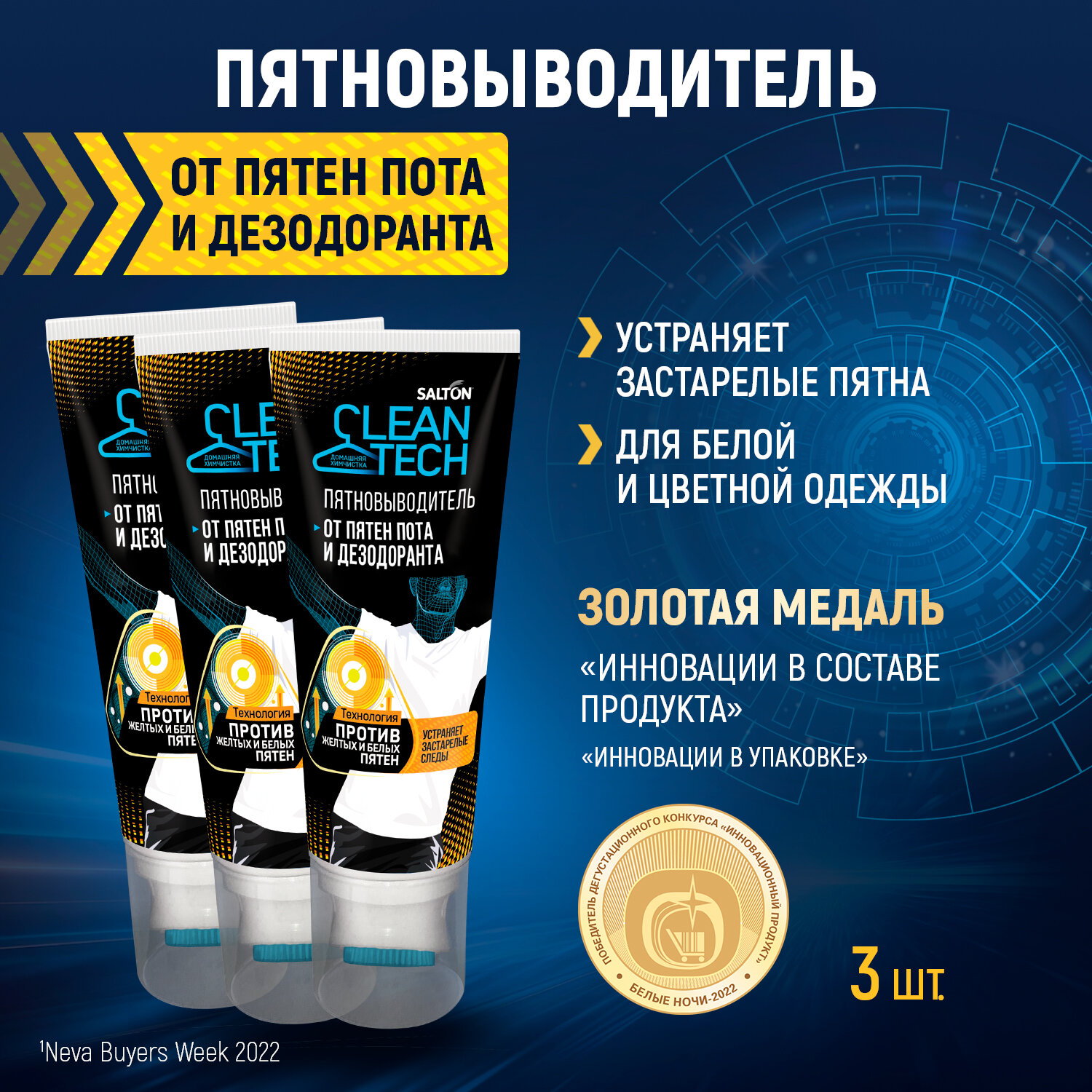 10 цен на Пятновыводитель от пятен пота и дезодоранта для белого и цветного белья удаление пятен Salton CleanTech, 120 мл х 3 шт