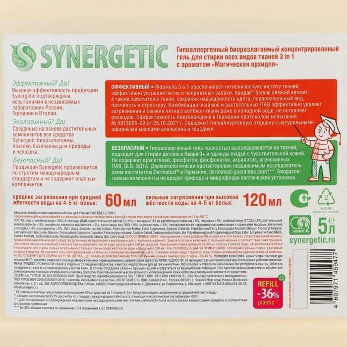 Биоразлагаемые гели для стирки "SYNERGETIC" информация: