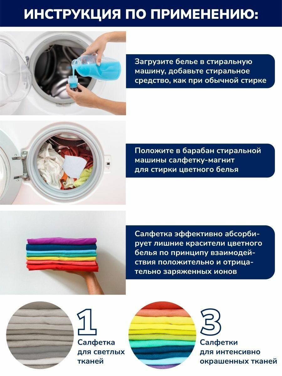 Салфетки-магниты для микс стирки цветного белья, против окрашивания, ловушка для цвета и грязи информация: