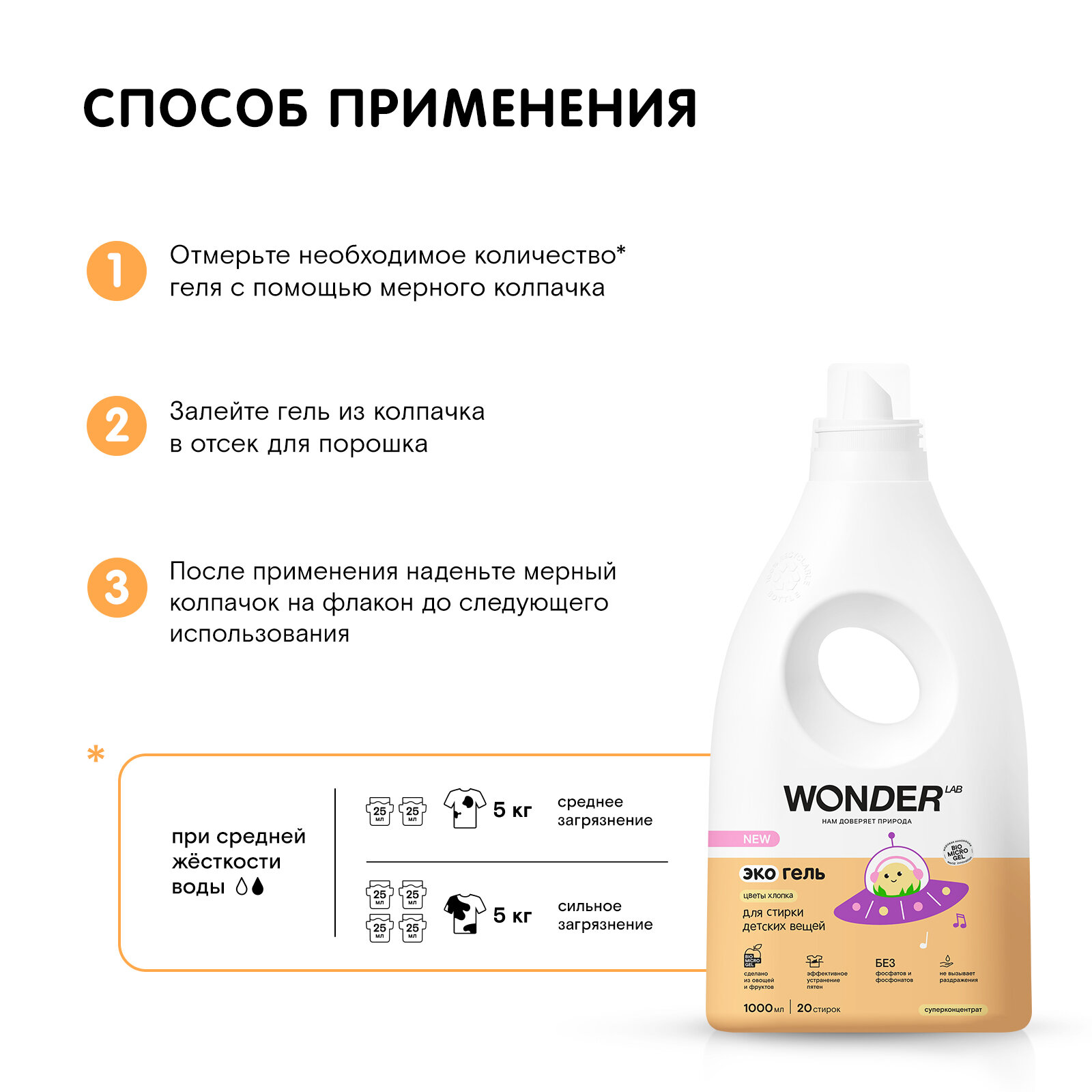 Гель для стирки WONDER LAB Экогель для детских вещей цветы хлопка, 1 л, бутылка информация: