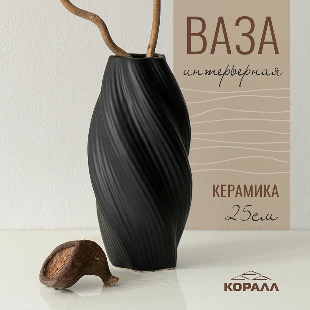 Ваза для цветов и сухоцветов декоративная интерьерная керамика черная 25 см информация: