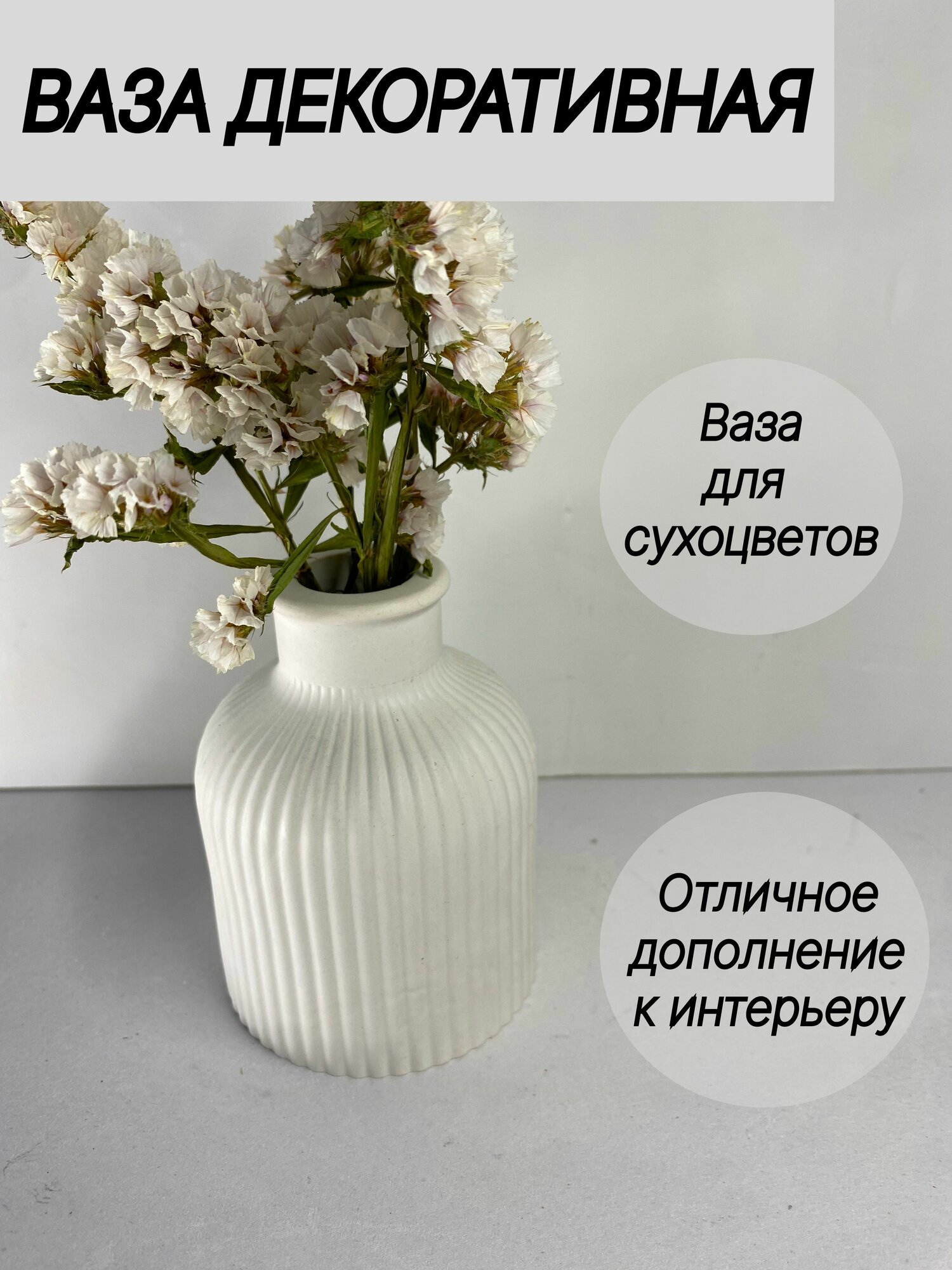 Ваза декоративная 15 см "белый" / Набор декор для дома из гипса/ Ваза для сухоцветов 467 ₽