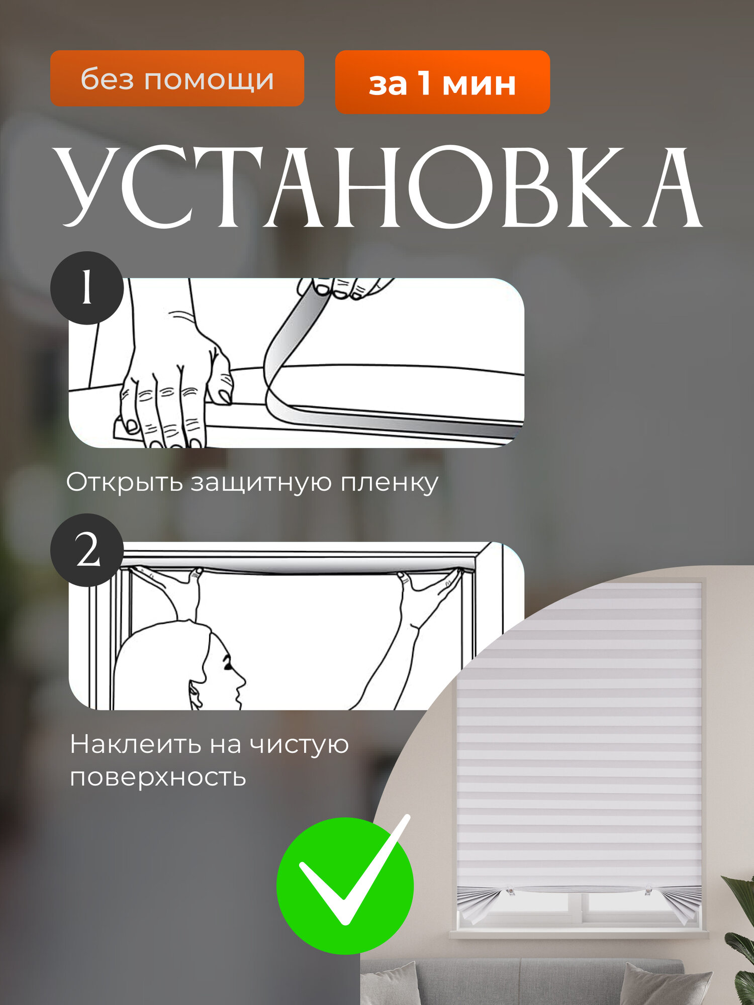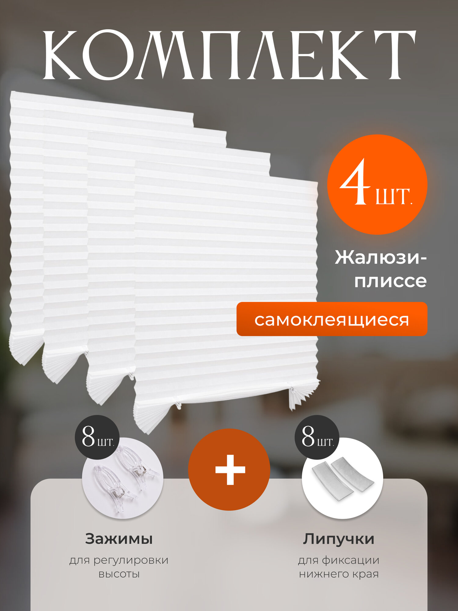 Жалюзи самоклеящиеся тканевые 60*180 см комплект 4 шт. информация: