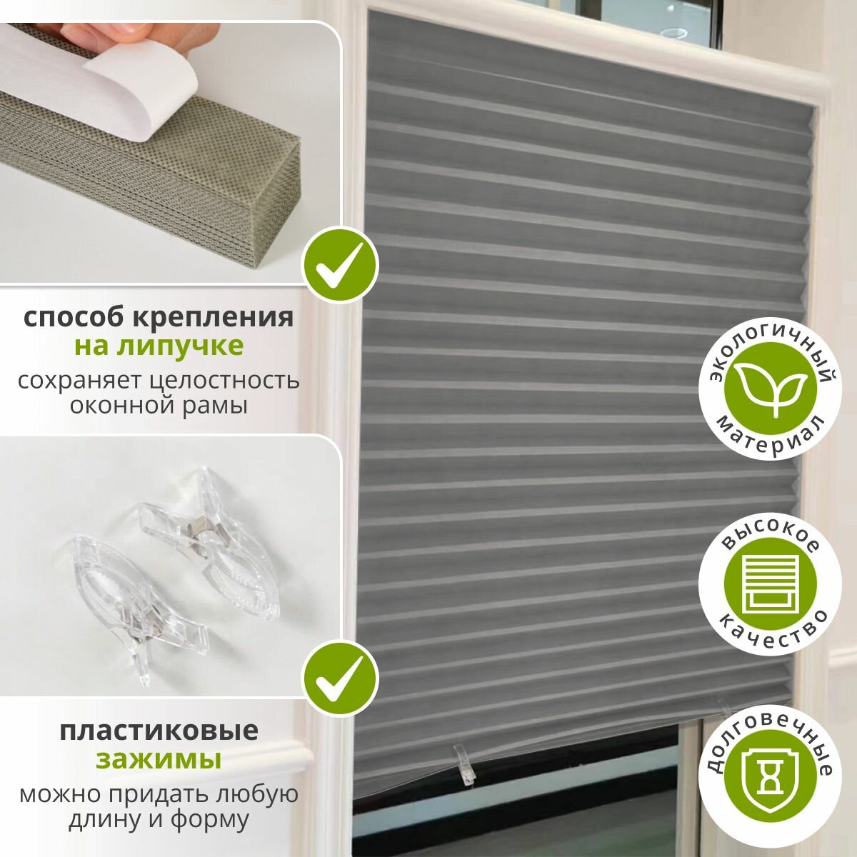 10 цен на Жалюзи плиссе самоклеящаяся 90х180 см. (1 шт) серый. Тканевые на липучке с зажимами и нижними фиксаторами
