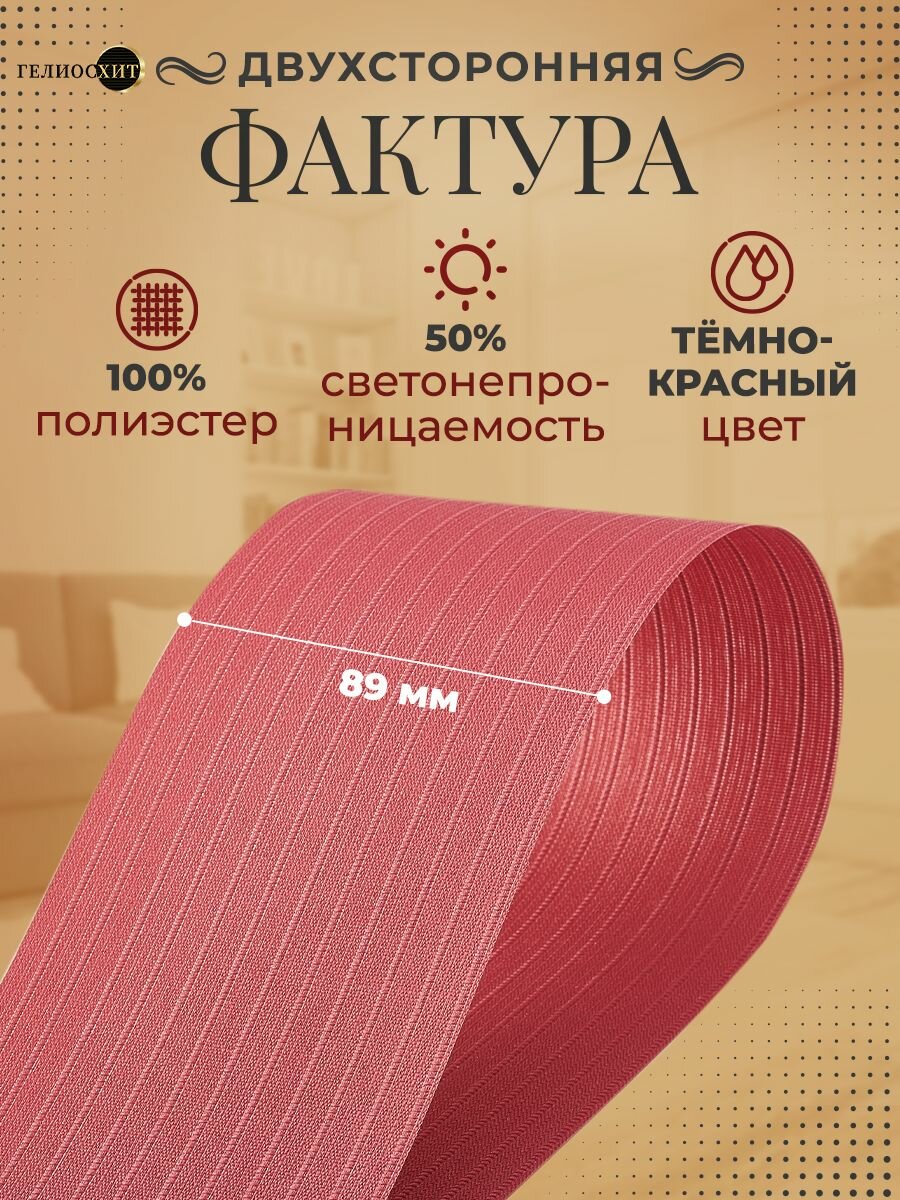 Ламели для вертикальных жалюзи 10 шт высотой 165 см темно-красного цвета, карниз приобретается отдельно, гелиосхит. 1 693 ₽