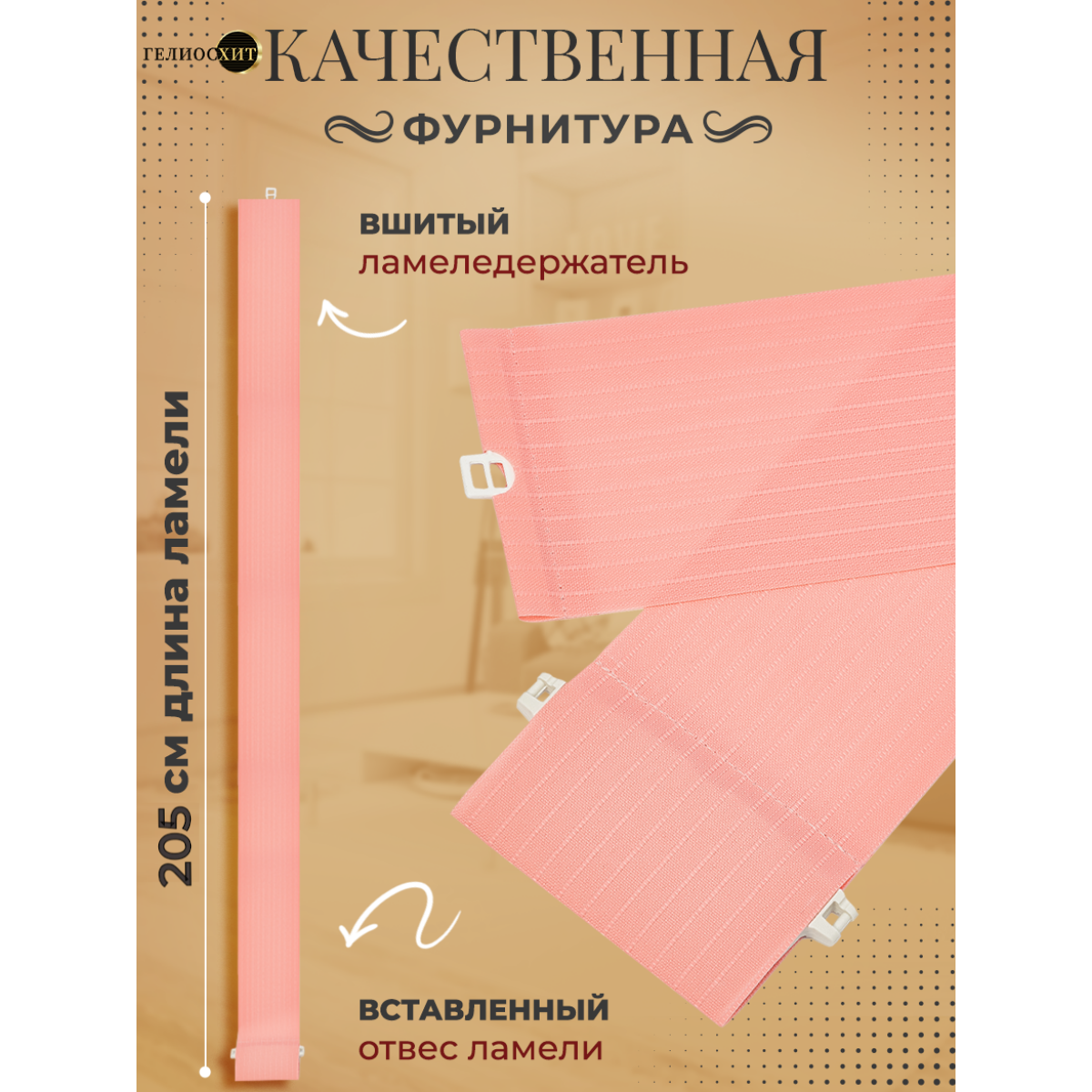 Ламели для вертикальных жалюзи 10 шт высотой 255 см персиковые, ткань Лайн, гелиосхит, карниз приобретается отдельно. 2 136 ₽