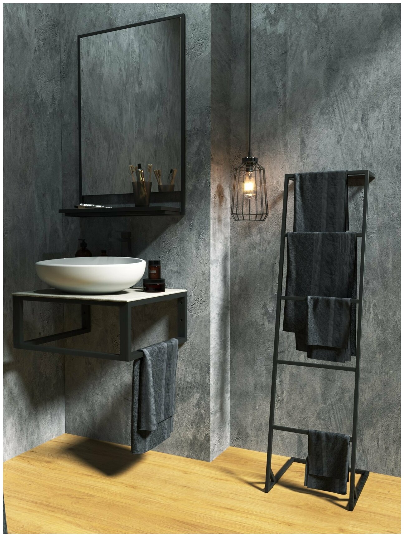 Зеркало с полкой в ванную 1Marka GRUNGE LOFT 60х90 см в металлической раме Ц0000007990 информация: