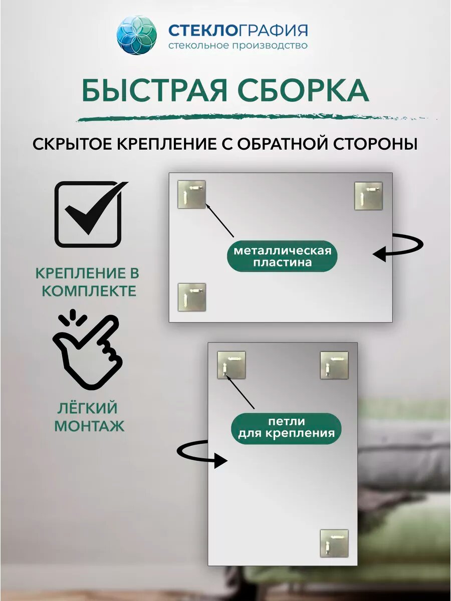 Зеркало "Стеклография" настенное полированное 70 х 90 без рамы подвесное 2 500 ₽