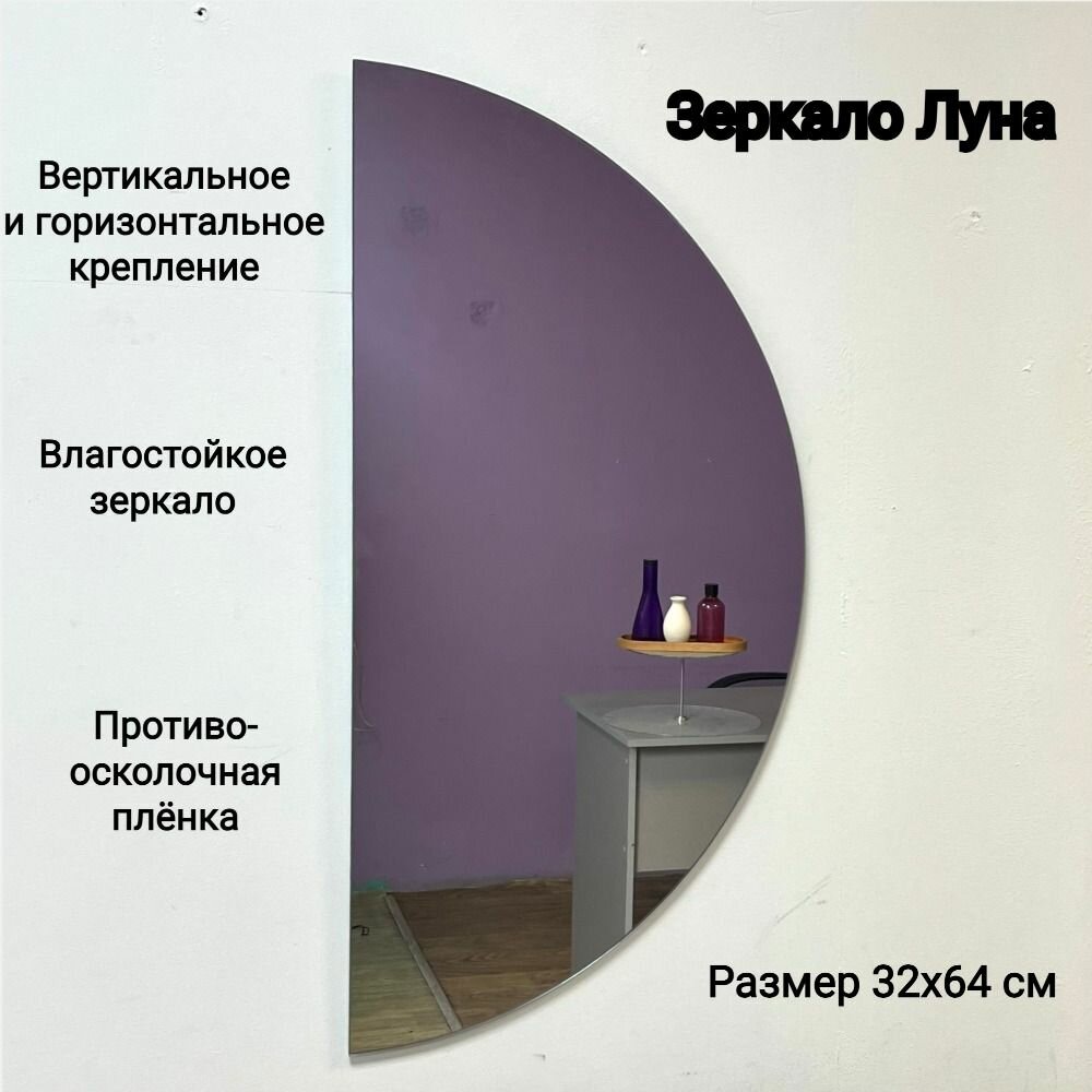 Зеркало для ванной полукруглое, 4 типа крепления, Луна Briola, 32х64 см информация: