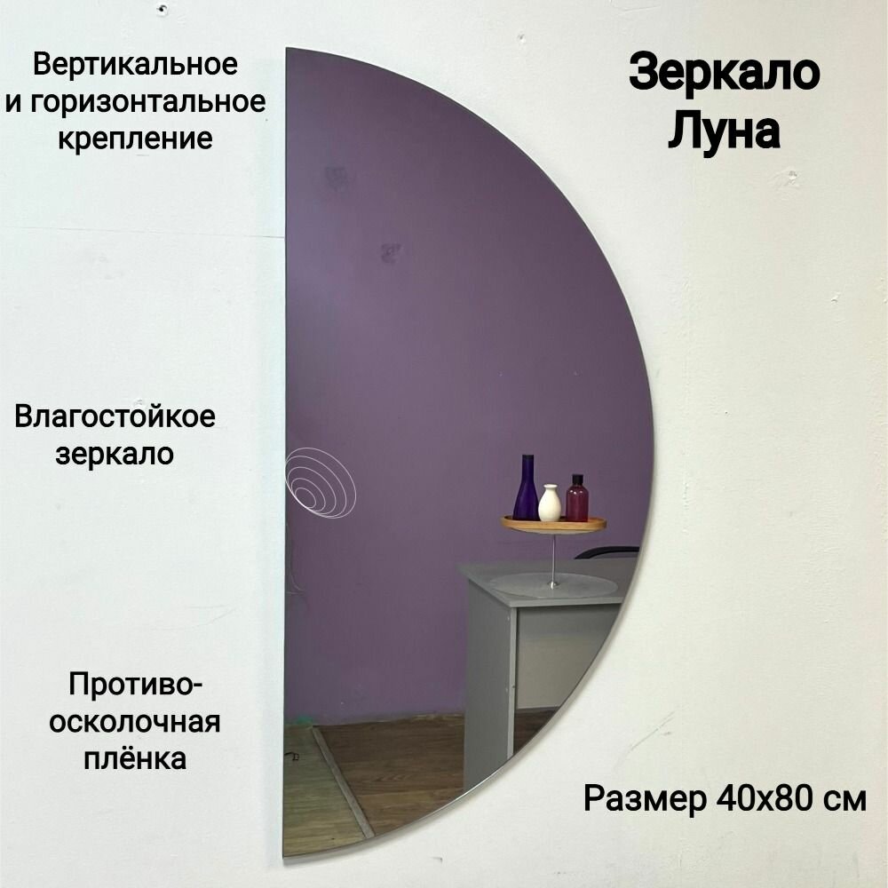 Зеркало для ванной полукруглое, 4 типа крепления, Луна Briola, 40х80 см информация: