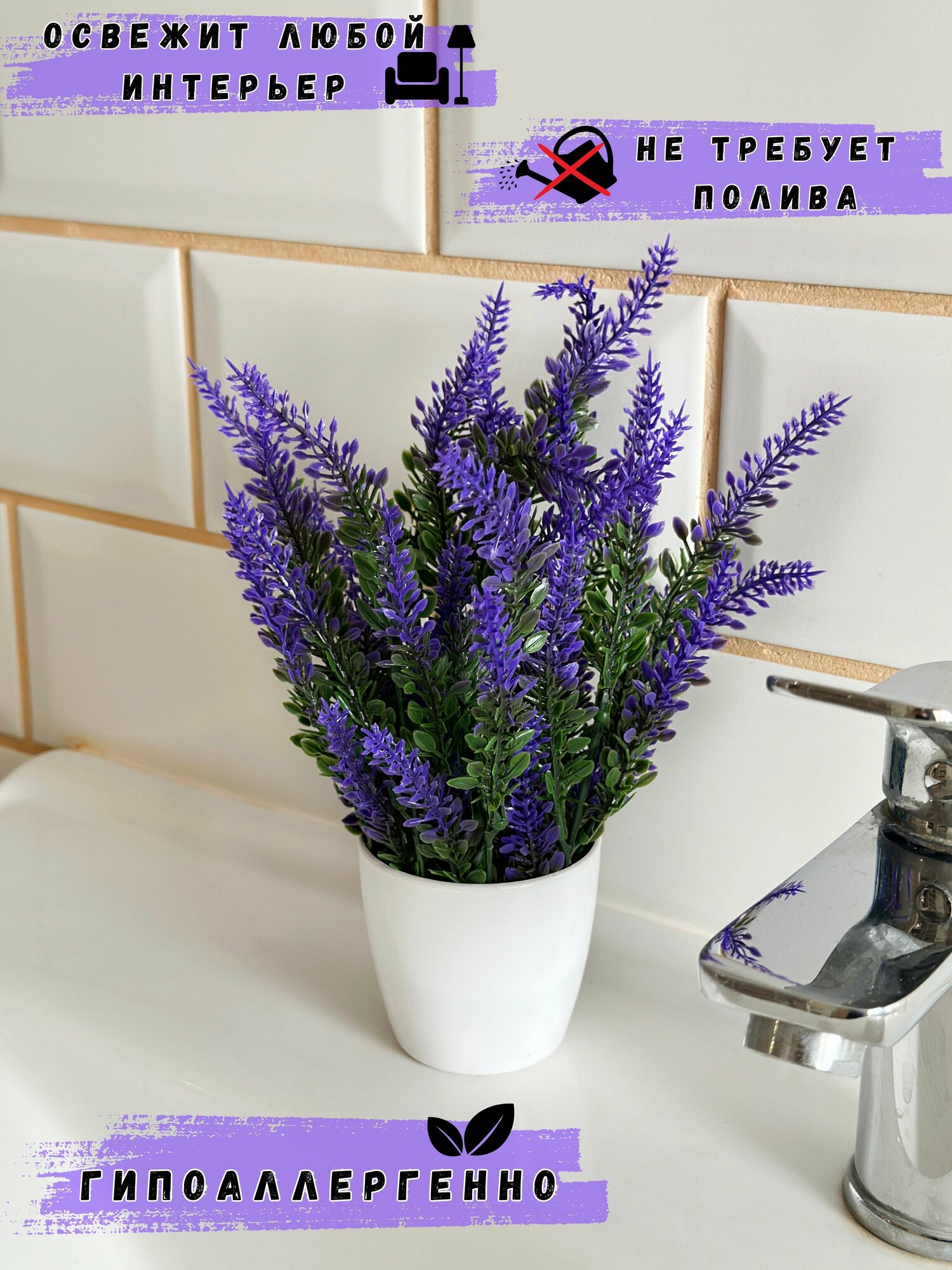 10 цен на Искусственные цветы / Лаванда в горшке / В кашпо / Декор / В подарок / Растения для дома / Украшение интерьера / Высота 23 см