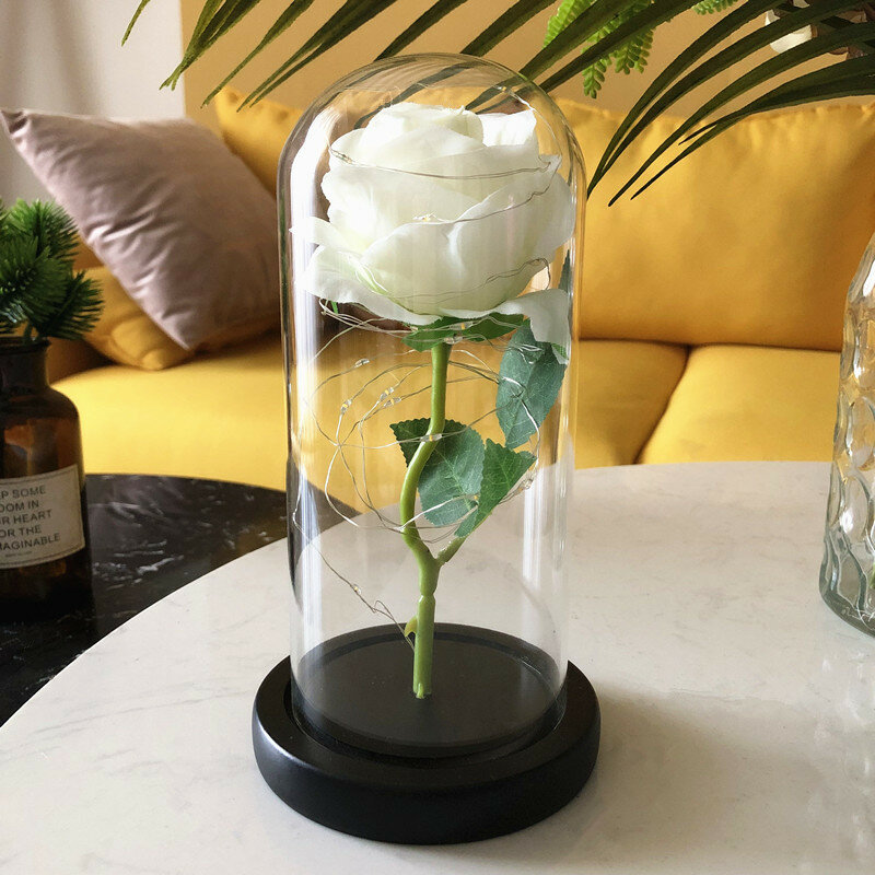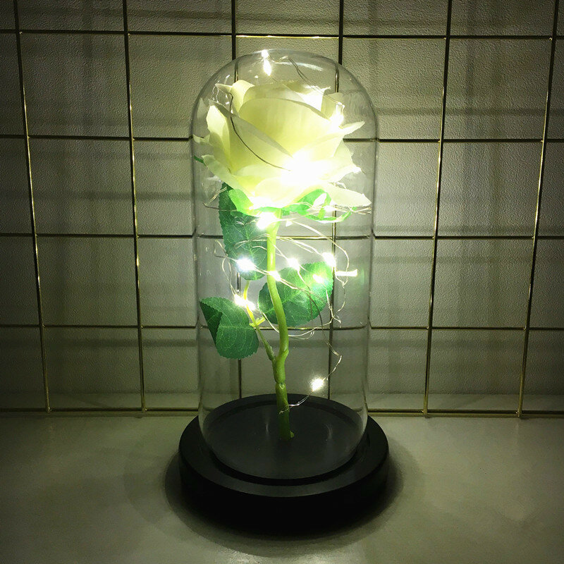 10 цен на Роза из искусственного шелка в стекле со светодиодной подсветкой, подарок женщине / белая