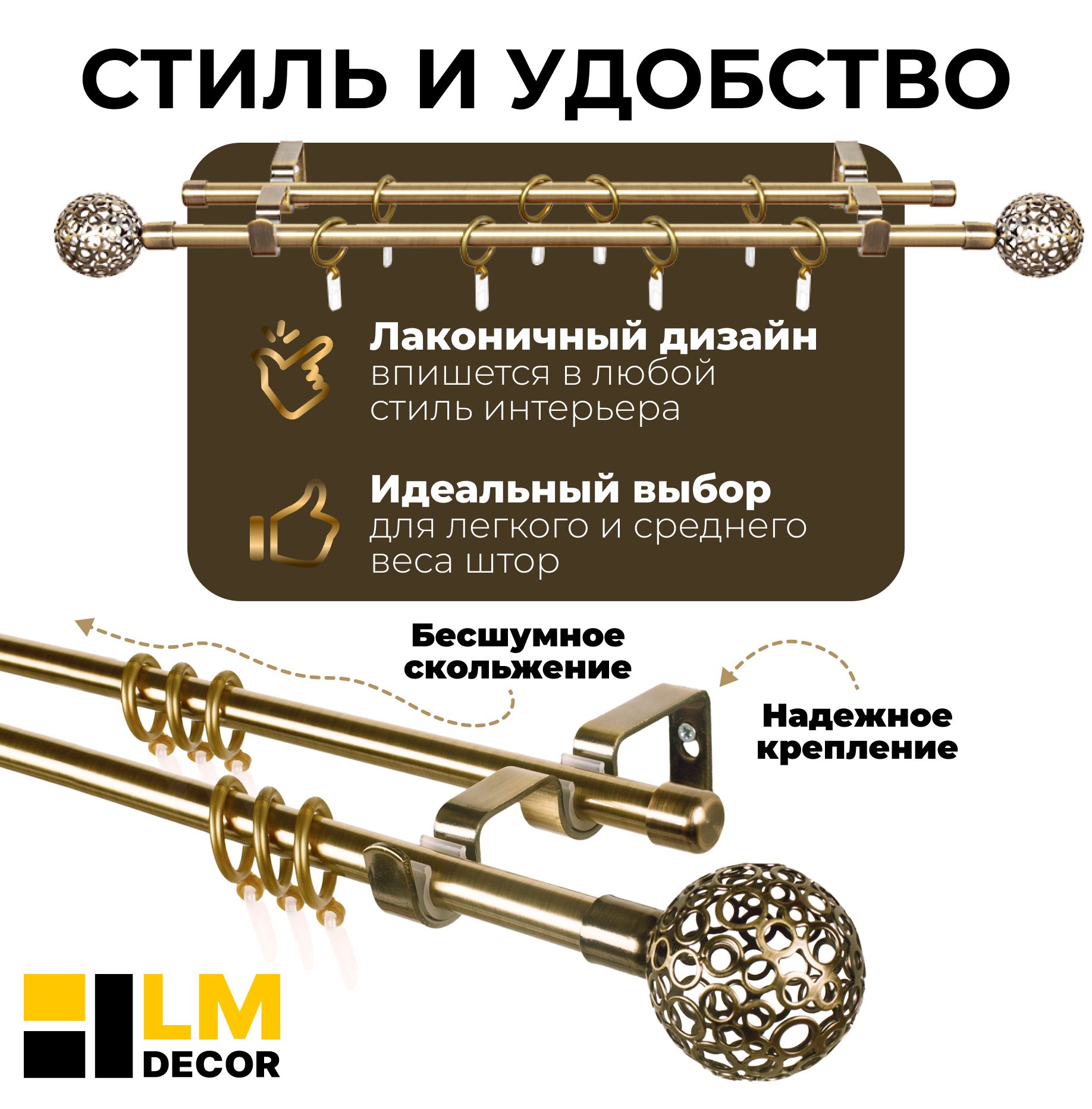 Отзывы на Карниз двухрядный металлический LM DECOR Лайт Ажур Ø 16/16 мм антик 3 м