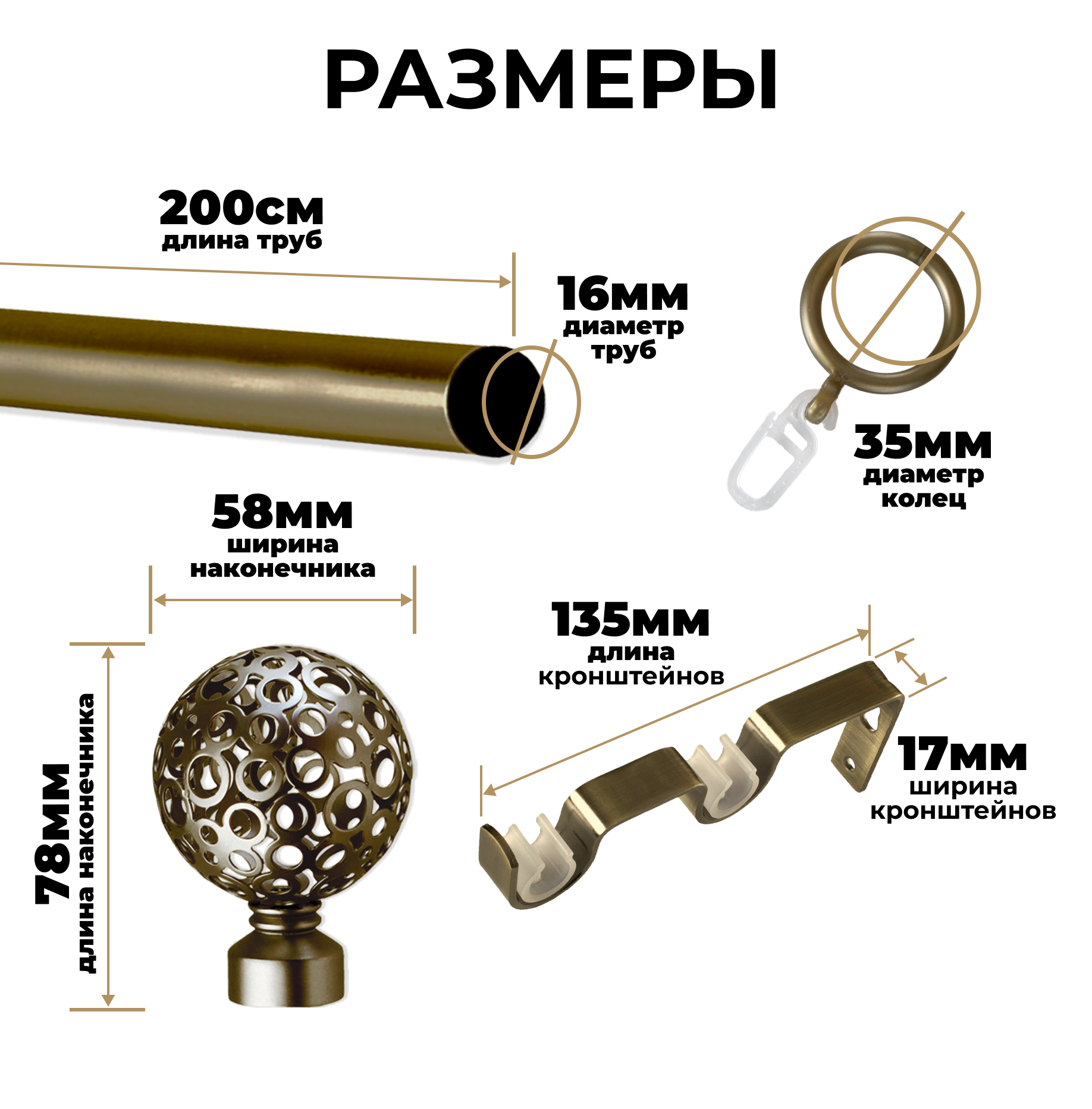 Карниз двухрядный металлический LM DECOR Лайт Ажур Ø16/16 мм антик 2 м информация: