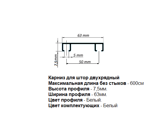 Алюминиевый карниз для штор двухрядный потолочный (340см) информация: