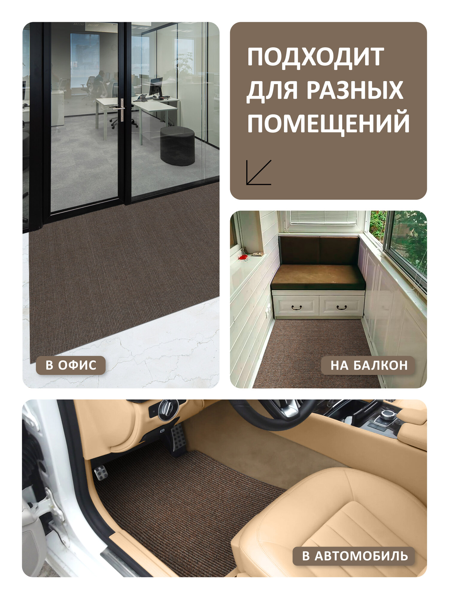 Отзывы на Коврик вырезной придверный SHAHINTEX практик "Ребристый" антискользящий 120х300 мокко