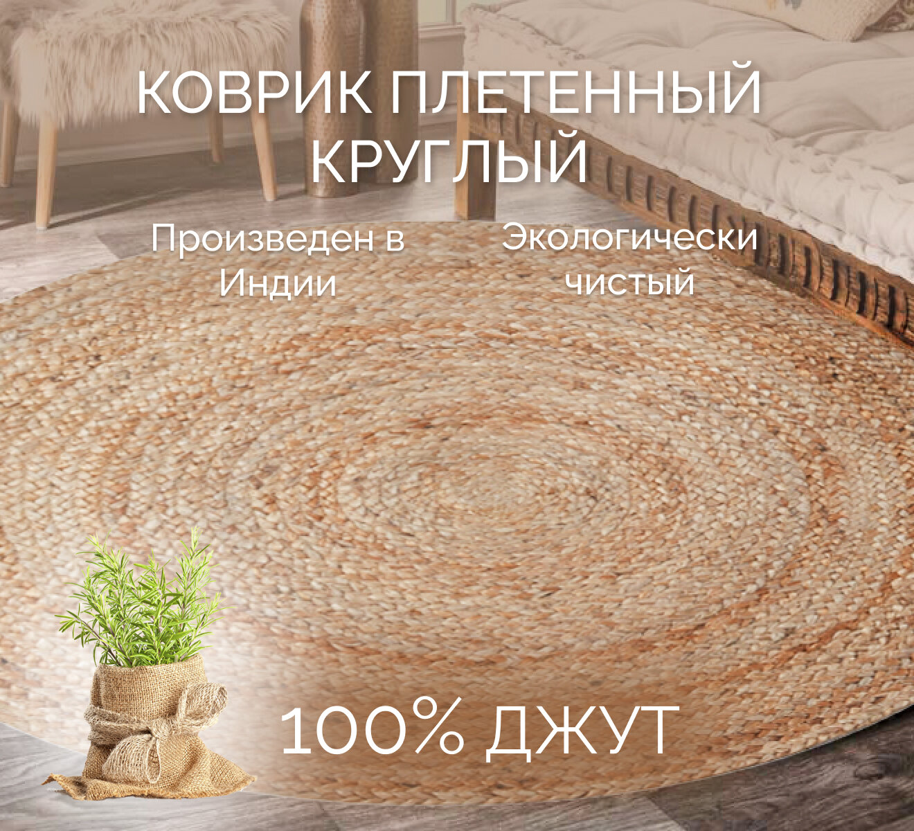 10 цен на Экоковрик джутовый, круглый 80х80 (арт. IC-12606), цвет - бежевый