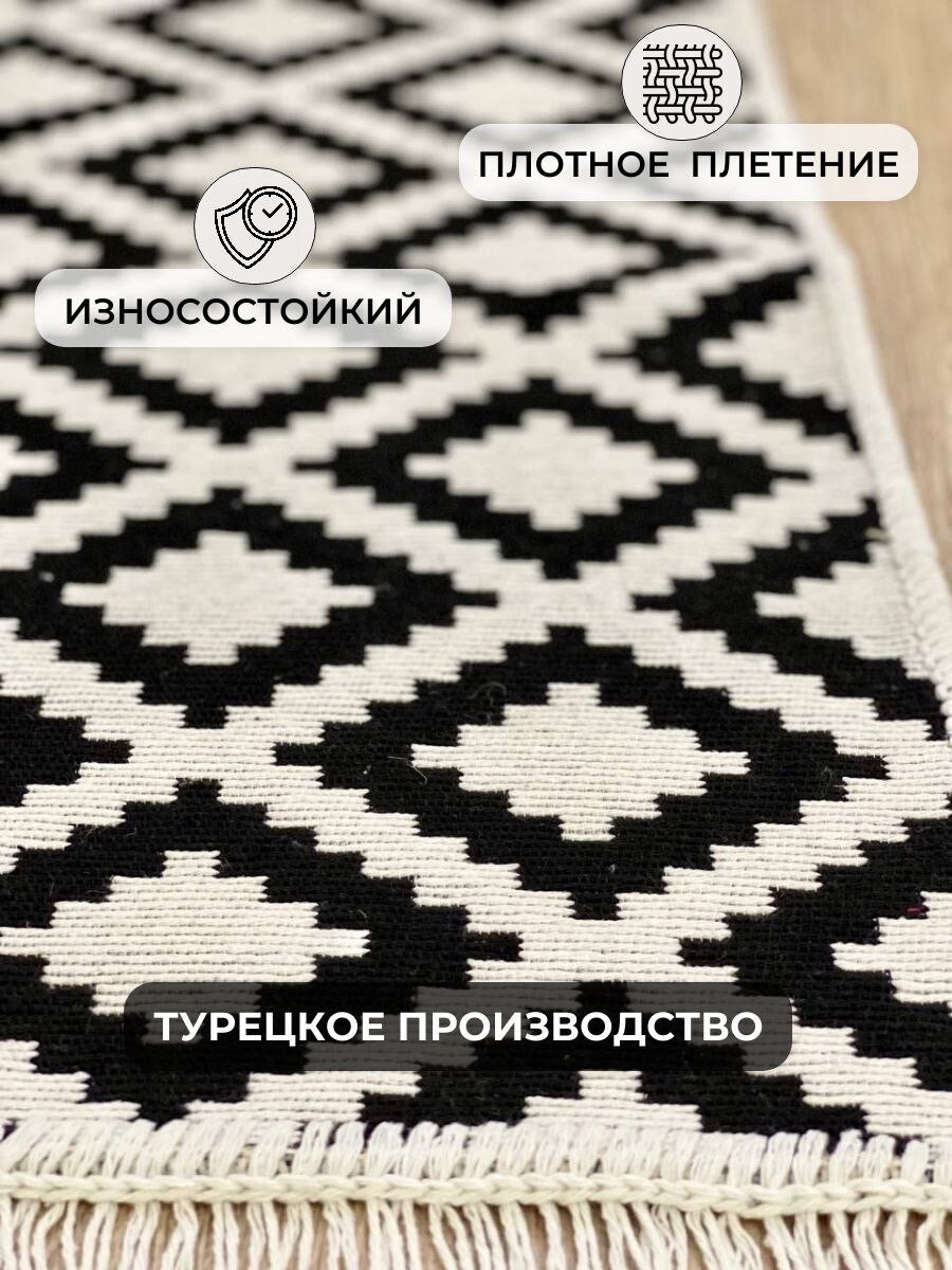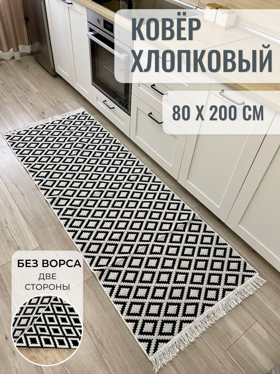 Отзывы на Ковер дорожка хлопковый двусторонний 80×200 см / геометрический принт / черно-белый ковер Musafir Home