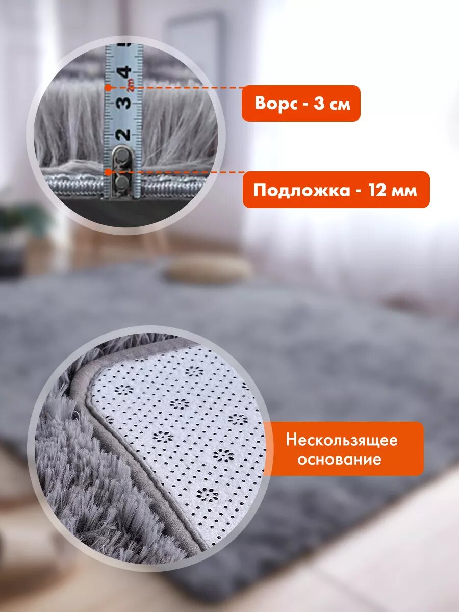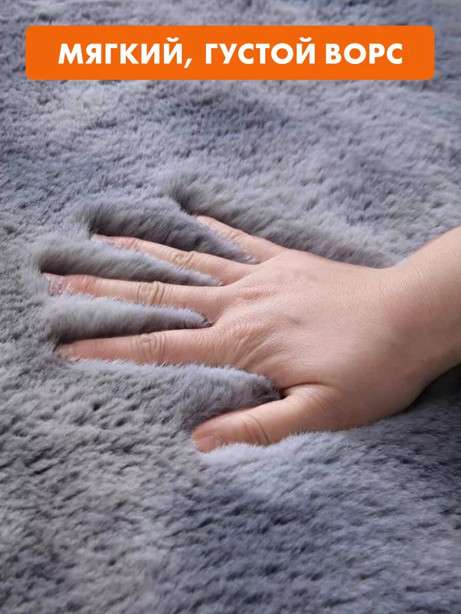Ковер на пол для комнаты с ворсом 150х200 см, мягкий пушистый меховой в гостиную, спальню, зал и детскую антискользящий, серый 3 324 ₽
