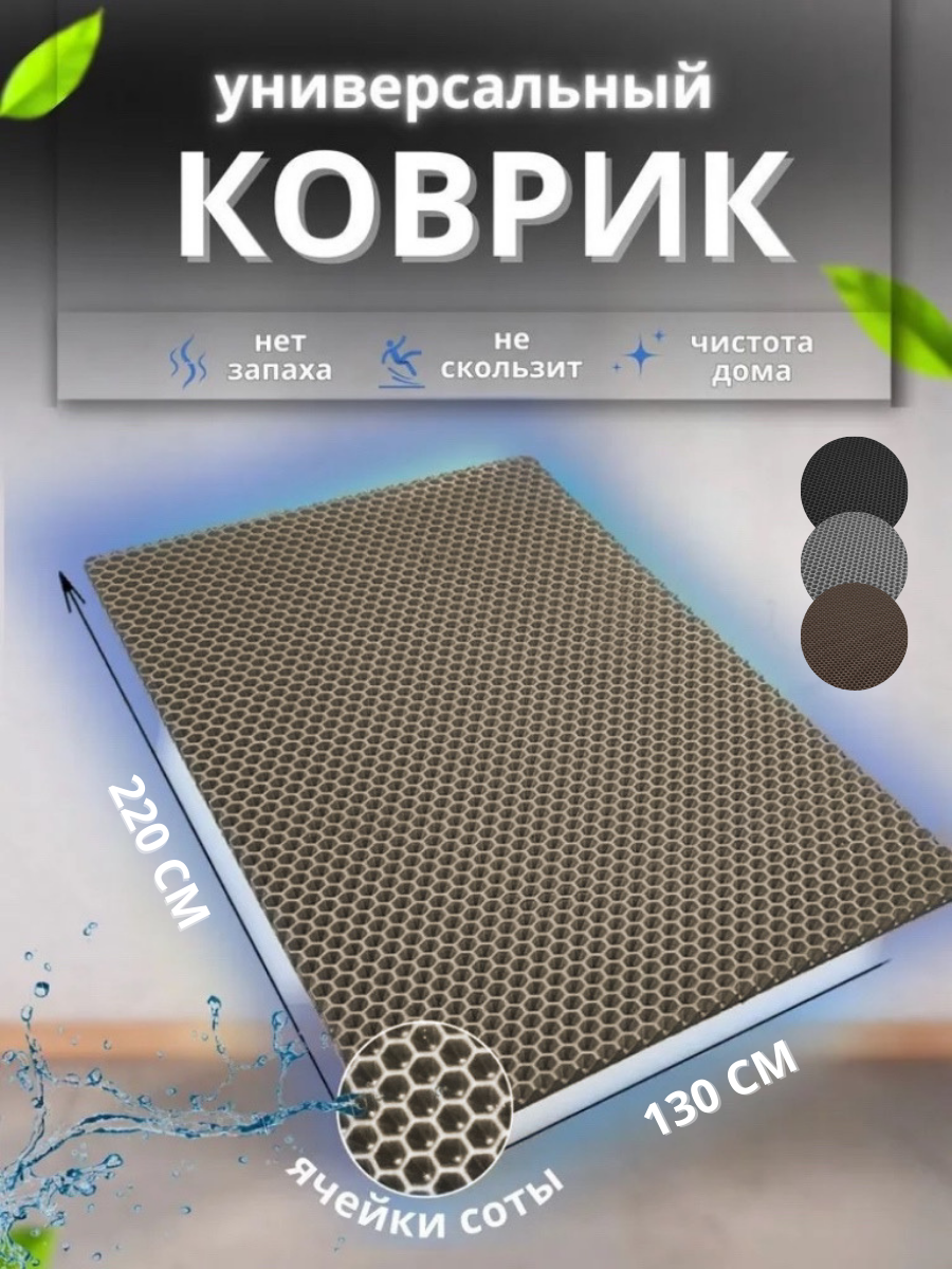 Коврик ЕВА/EVA соты грязезащитный придверный в прихожую, авто, для дачи и дома универсальный 136х65см коричневый