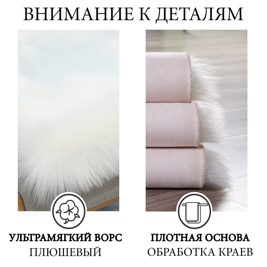 Отзывы на Ковер шкура на пол Einfil 60x180 см, белый мех, машинная работа, противоскользящая подошва