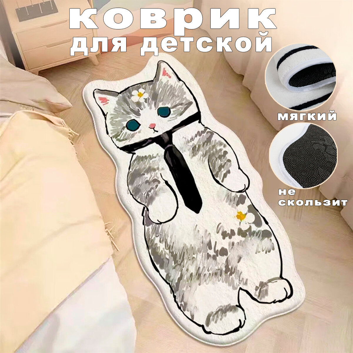 10 цен на Коврик Котик прикроватный на пол детский в галстуке