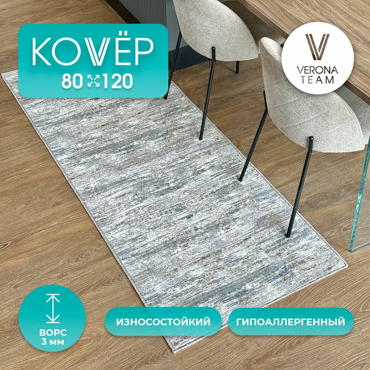 Ковер на пол, Коврик для комнаты прикроватный придверный VERONA ТEAM, 80x120 см 710 ₽