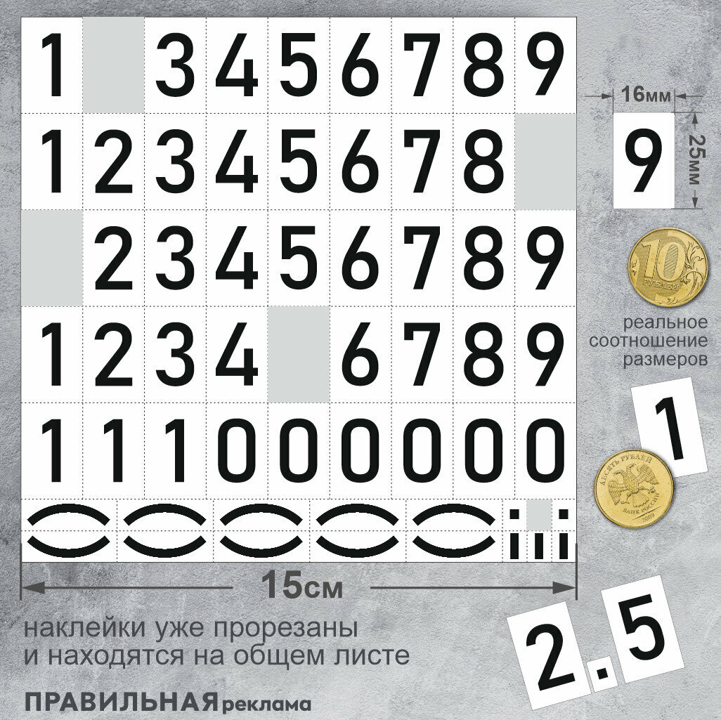 Наклейки цифры / наклейки для маркировки самоклеящиеся (бирки) / 0-9 (90 шт.) , высота 25 мм. информация: