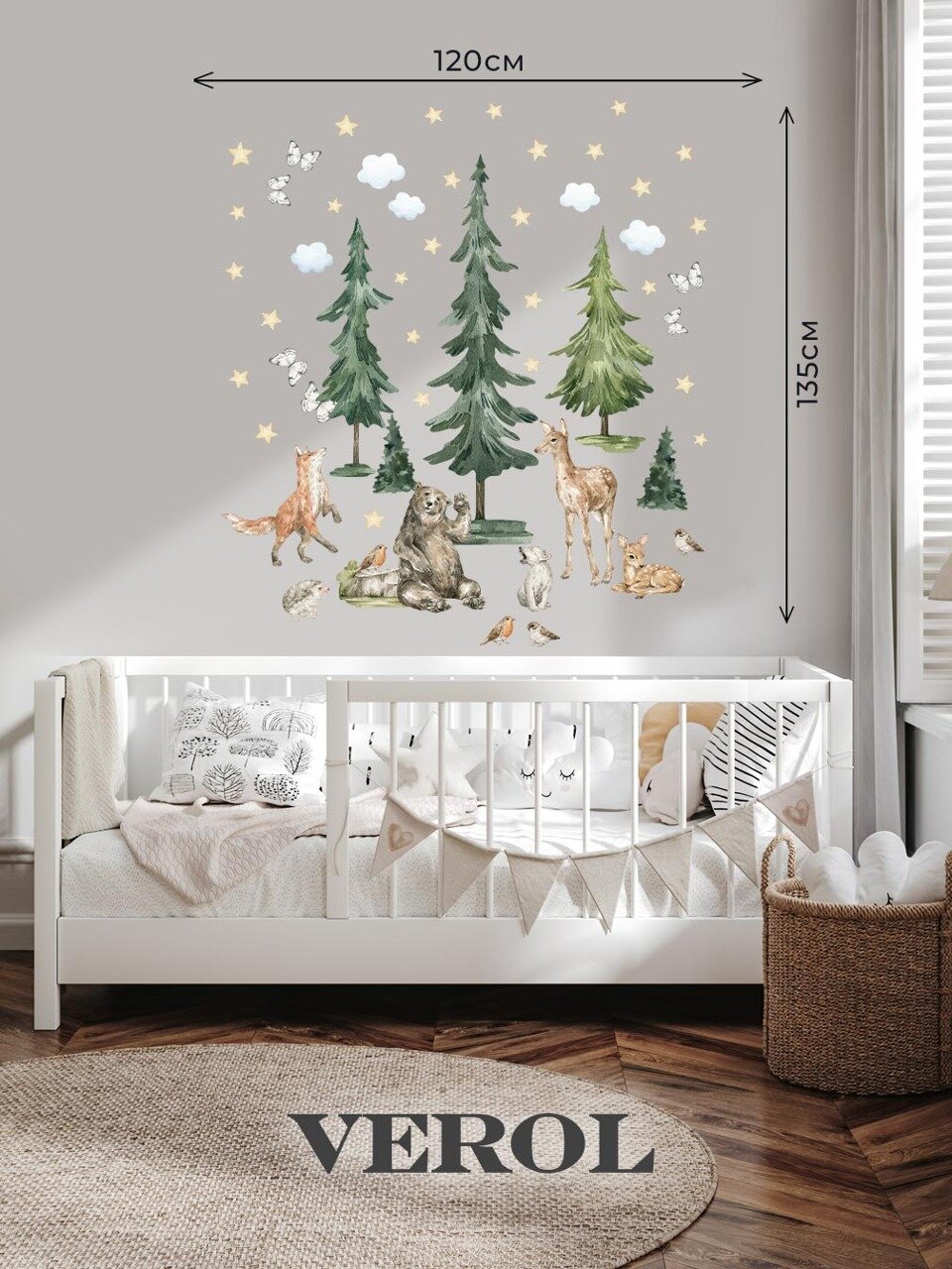 Наклейки интерьерные VEROL "Лесные животные" декор для дома на стену, детские наклейки для декора и интерьера, пленка самоклеящаяся, подарок информация: