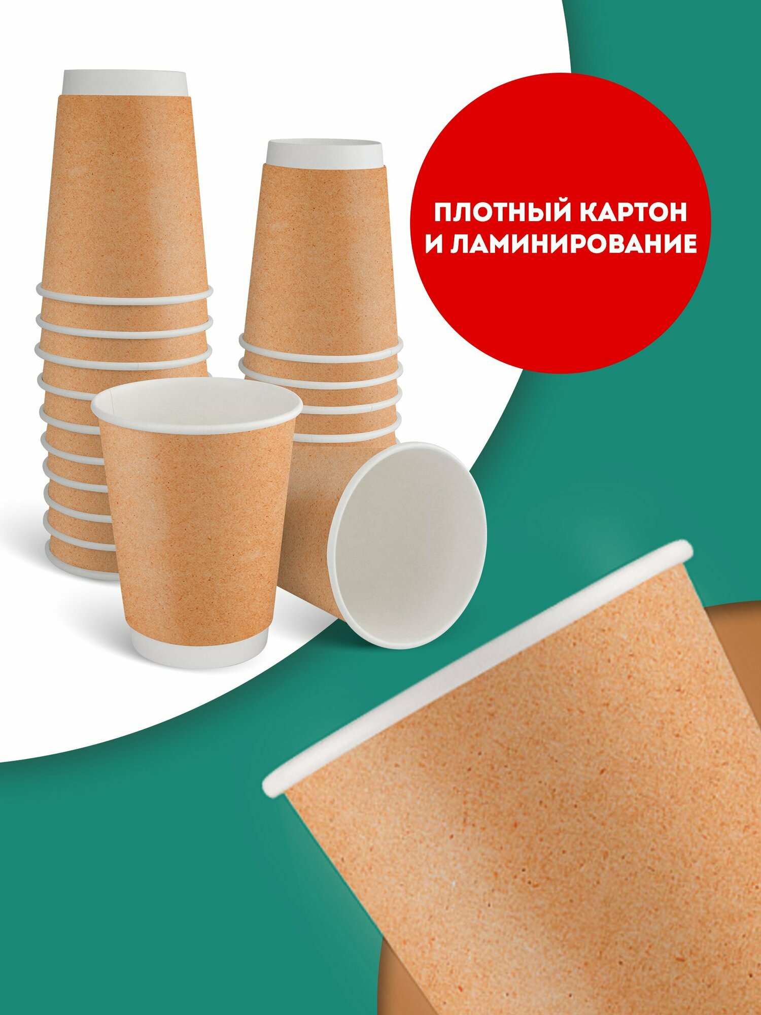 Набор одноразовых бумажных стаканов, 250 мл, 20 шт, крафт, двухслойные; для кофе, чая, холодных и горячих напитков информация: