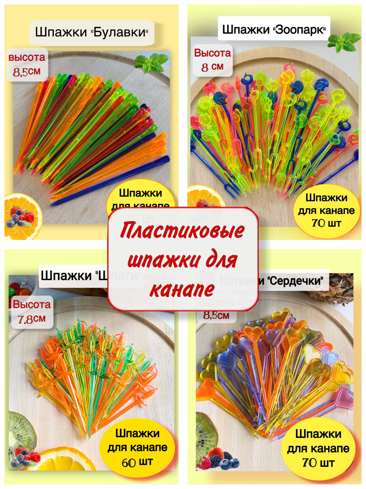 | Дополнительная информация | шпажки пластиковые для канапе |