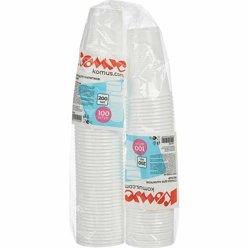 ООО Комус Стакан одноразовый пластиковый 200 мл белый 100 штук в упаковке Стандарт 8226 информация: