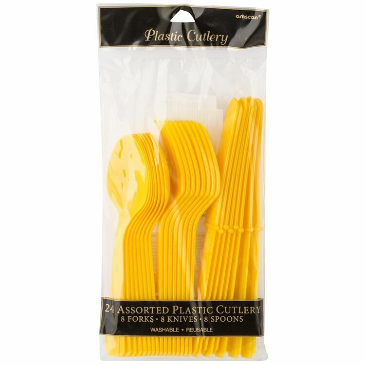 Столовые приборы Yellow Sunshine, 8 персон, 24 предмета, пластиковые, желтые информация: