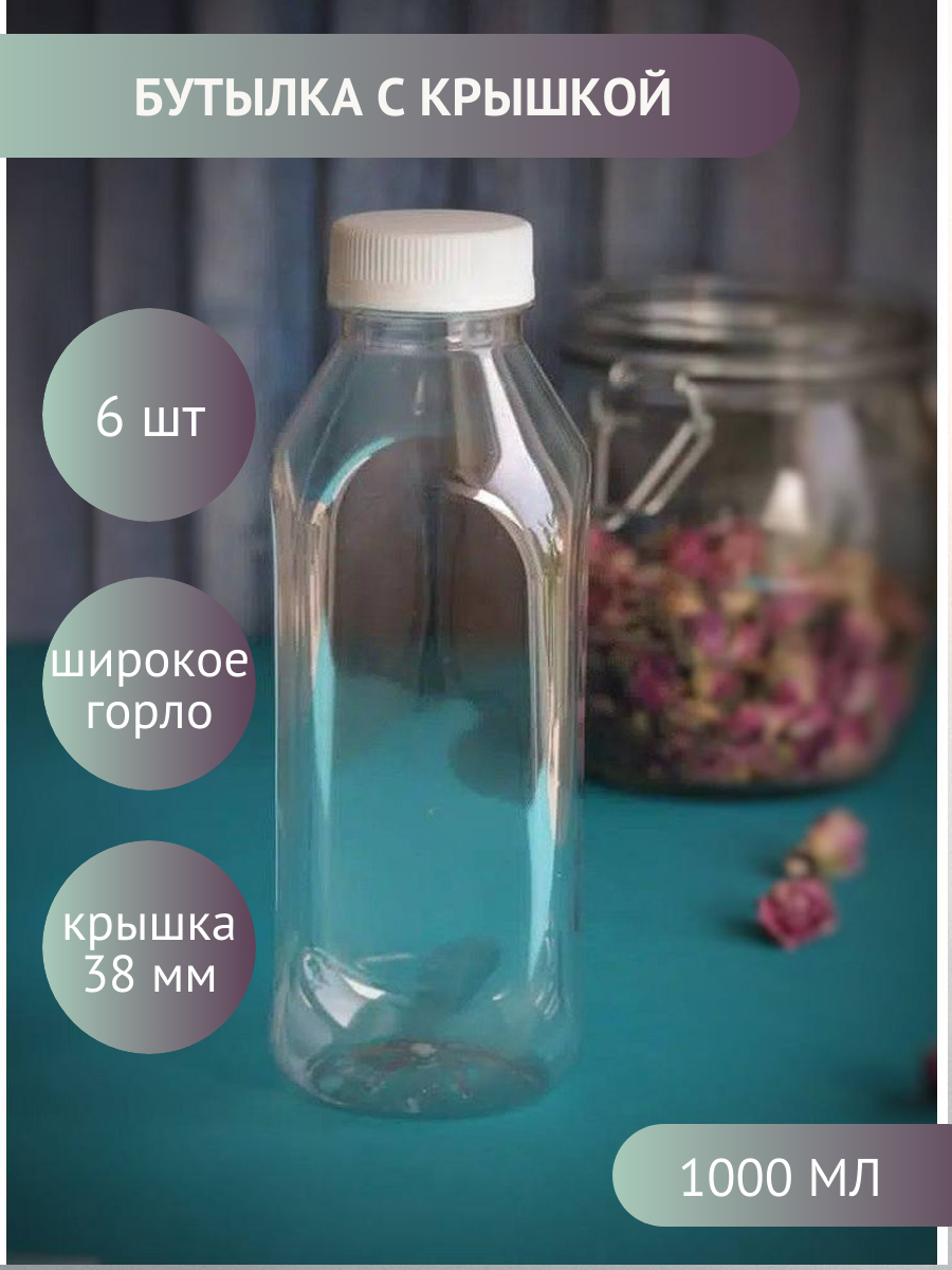 Отзывы на Бутылка пластиковая 1 л квадратная с пробкой, крышкой, широкое горло 38 мм, прозрачная, 6 шт.