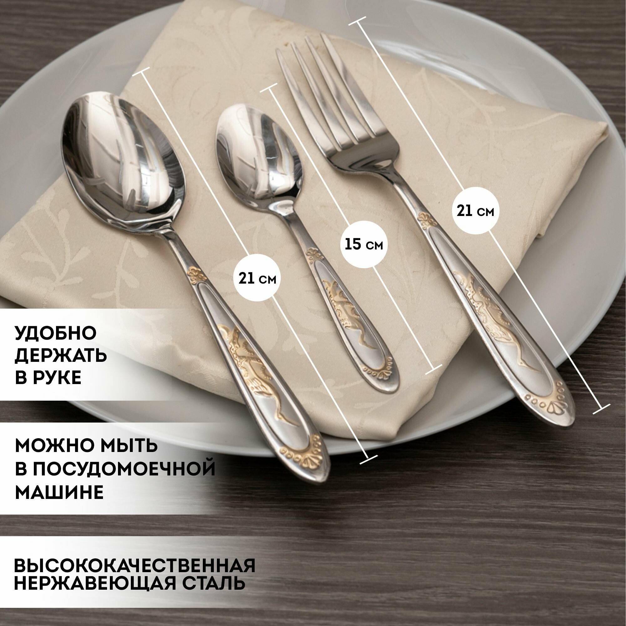 | В набор входит | Столовая ложка 6 предметов Столовая вилка 6 предметов Чайная ложка 6 предметов |