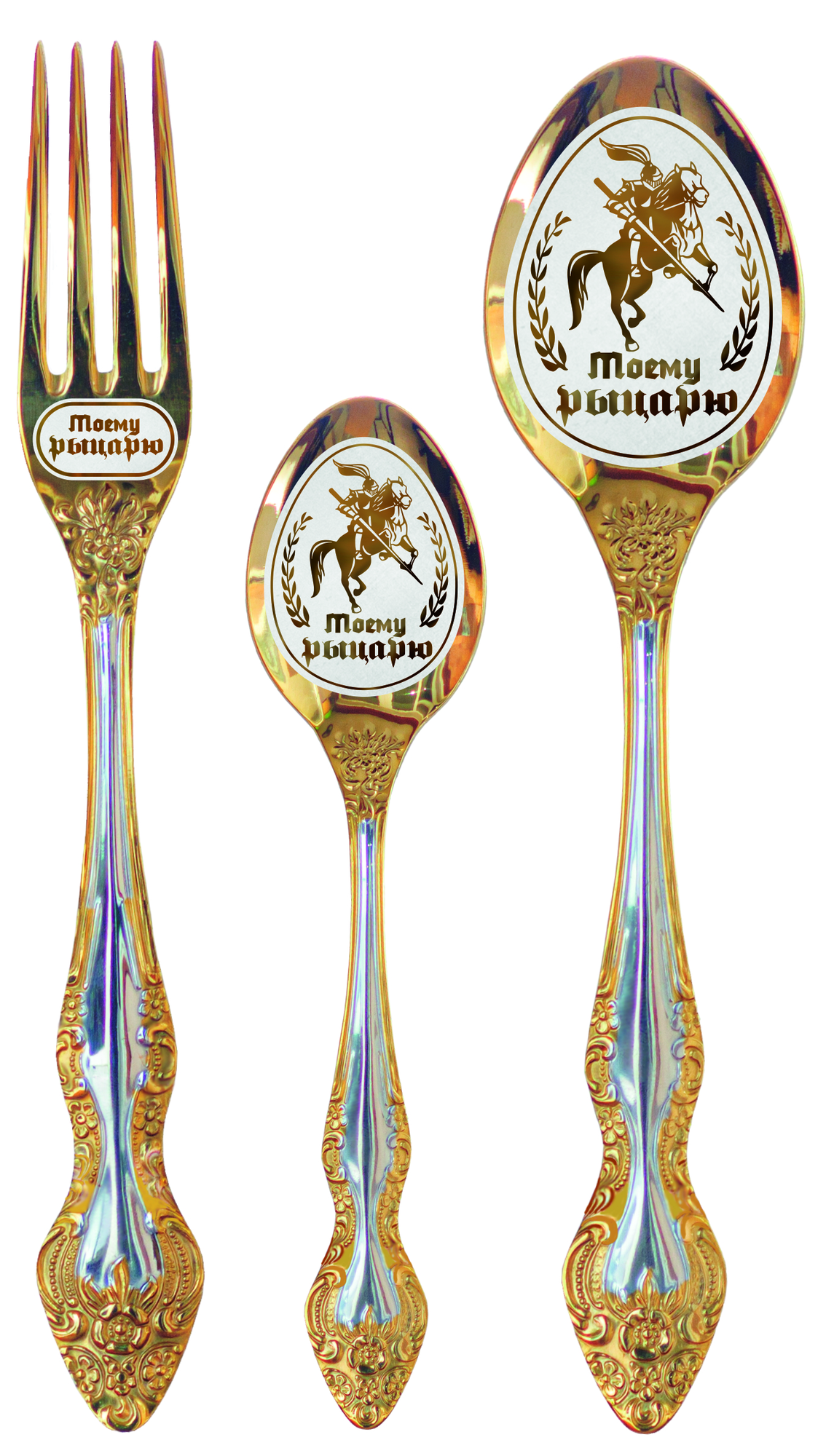 Именной набор столовых приборов "Моему рыцарю" информация: