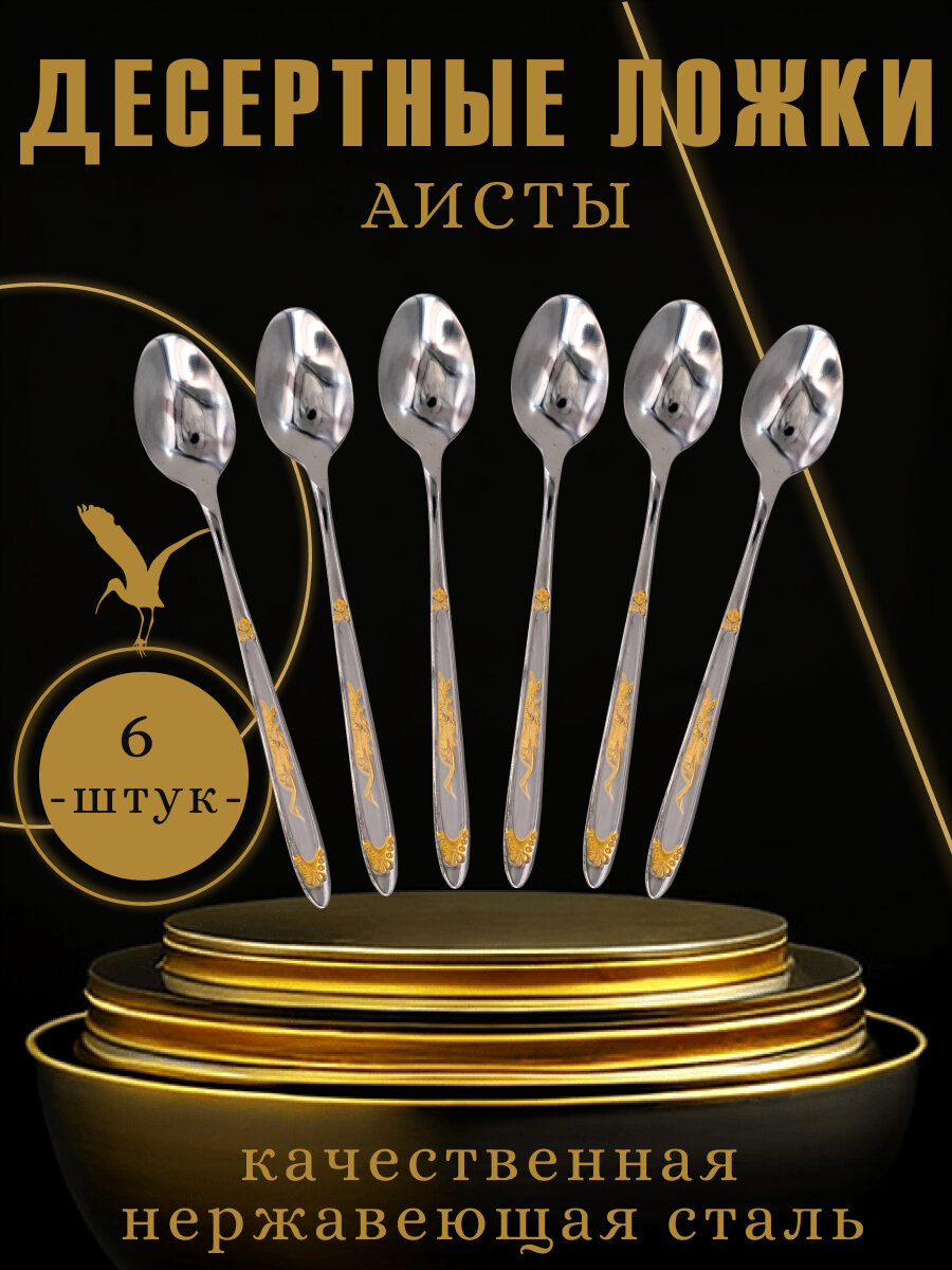 10 цен на Набор ложек с узором "аист" для десерта, кофе, чая 6 штук, 19 см