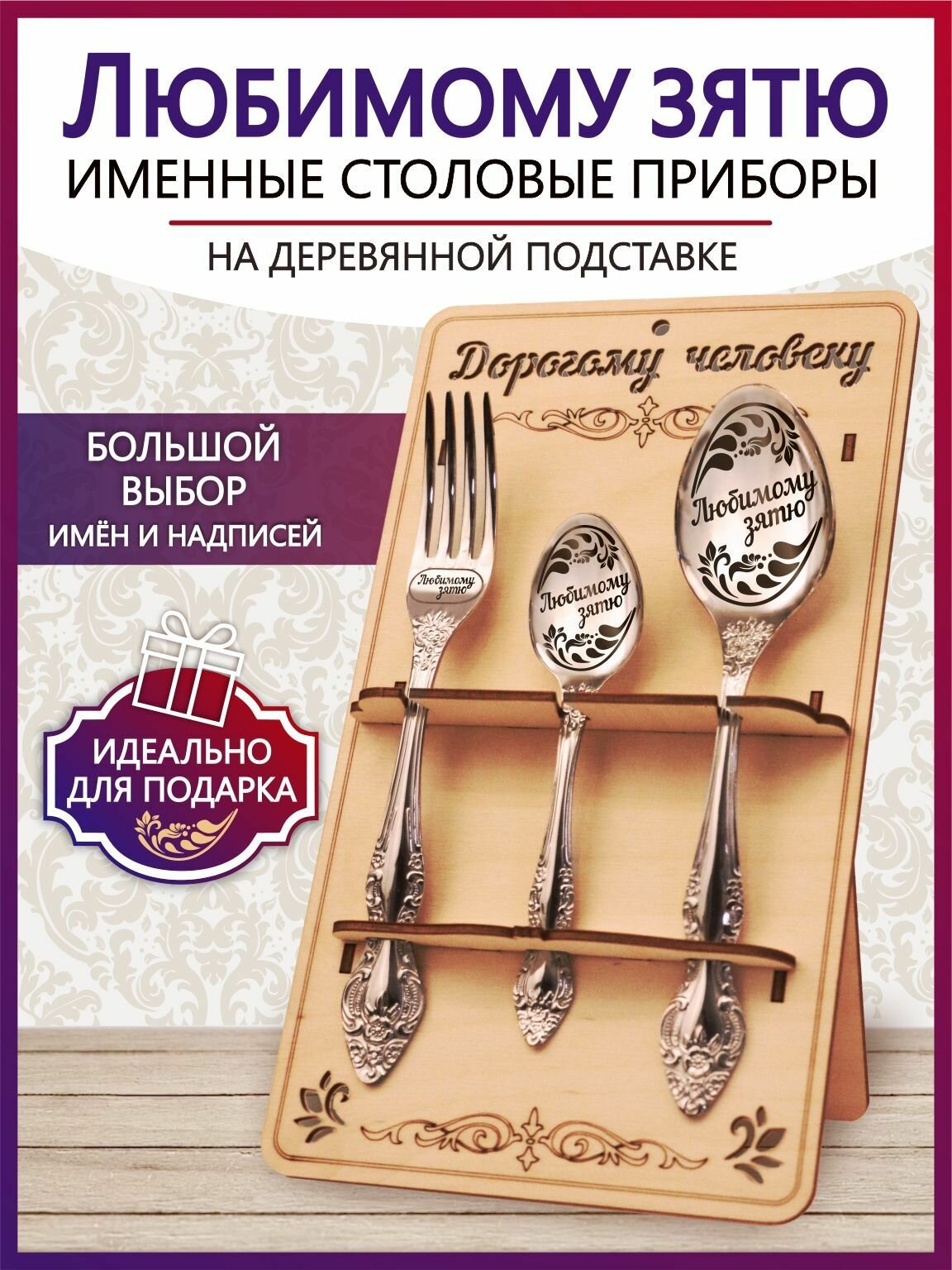 Отзывы на Подарочный столовый набор приборов Любимому зятю из 3-х предметов на подставке